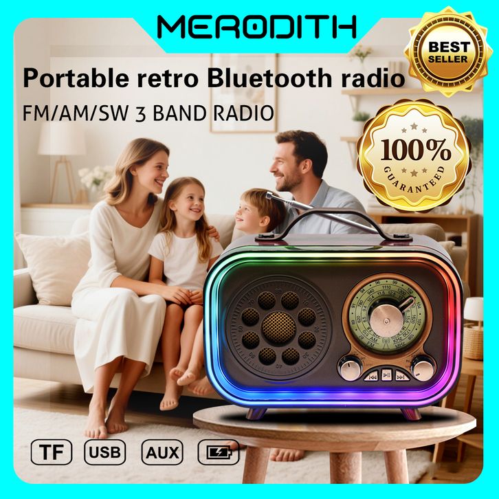 MERODITH 1315 Radio Bluetooth Retro Portabel FM/AM/SW Warna Lampu Suasana Hati TF AUX USB Bluetooth Radio
