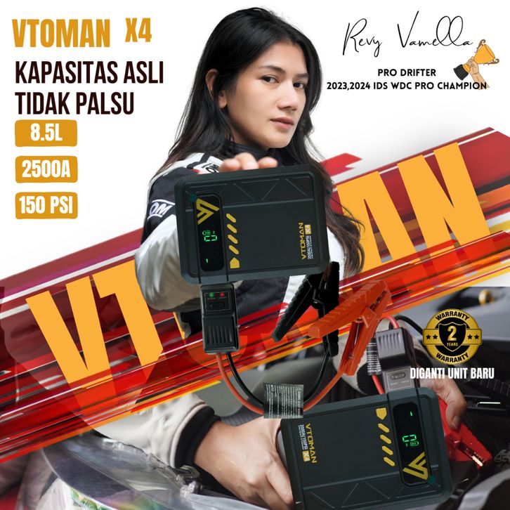 Vtoman X4 Jumper Aki Mobil 10000mAh Pompa Ban Elektrik Portable Car Jump Starter