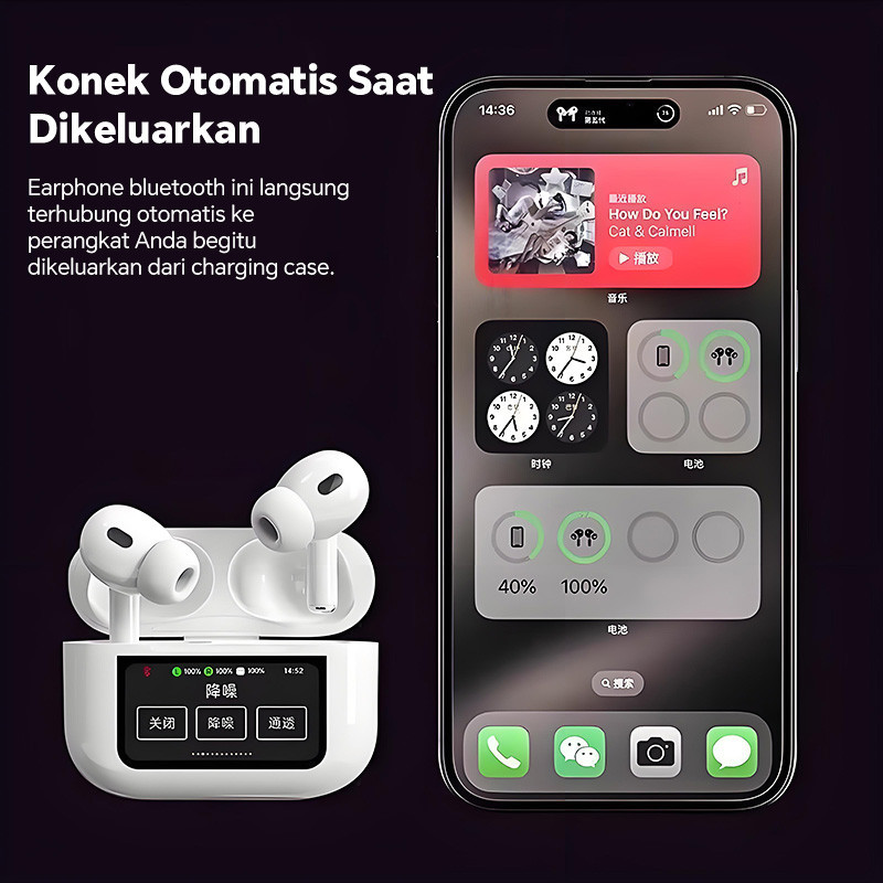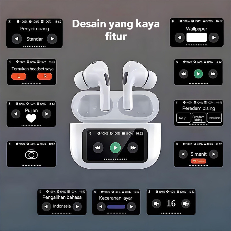 TWS A9 PRO ANC/ENC Smart Touch Screen TWS Earphone Headset Bluetooth V5.4 , Active Noise Reduction, True Wireless, Kontr