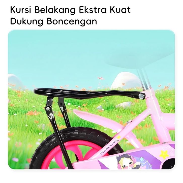 sepeda anak BEIGE Sepeda Anak Roda 4 Keranjang Ukuran 12 dan 14 Inci Warna Biru Ungu Pink Cocok Usia 6 Tahun