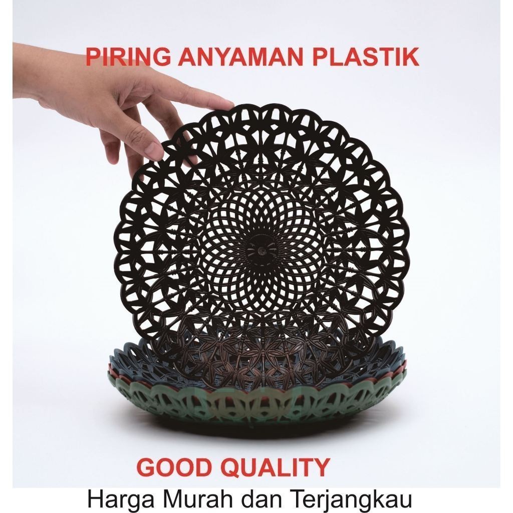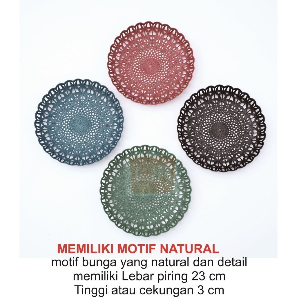 LJR Harga Paket 1 lusin 12 pcs Piring Rotan Plastik MOTIF BUNGA lotus 23 cm