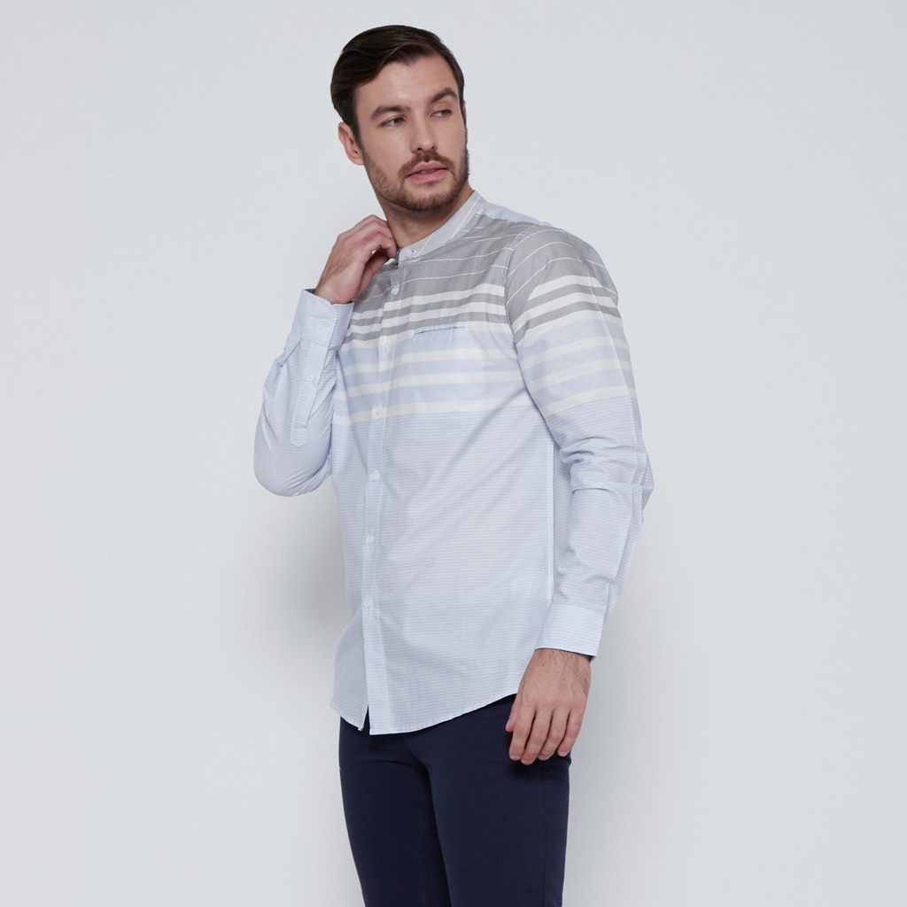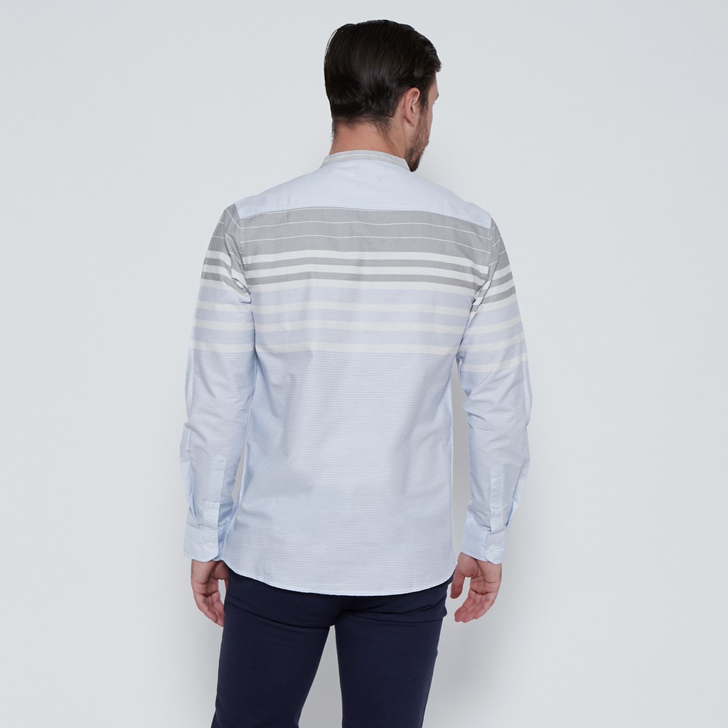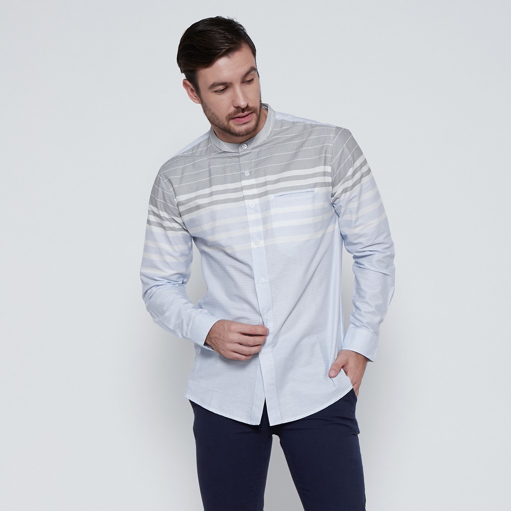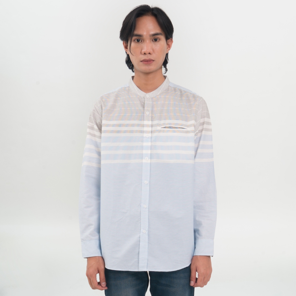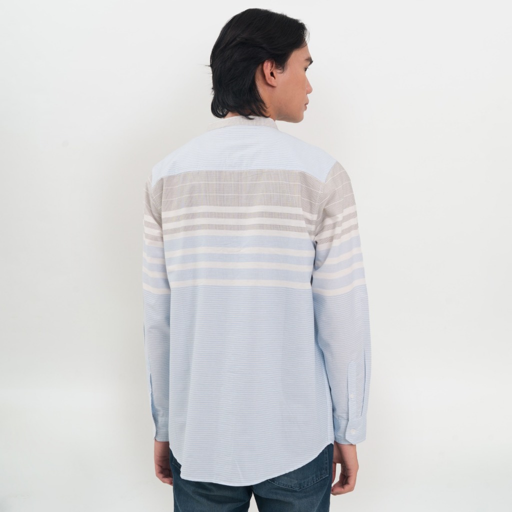 Kemeja Pria Koko Shanghai Stripe Panjang Biru Muda 1712A Fashion Kekinian Bahan ASLI ORIGINAL PREMIUM TERLARIS