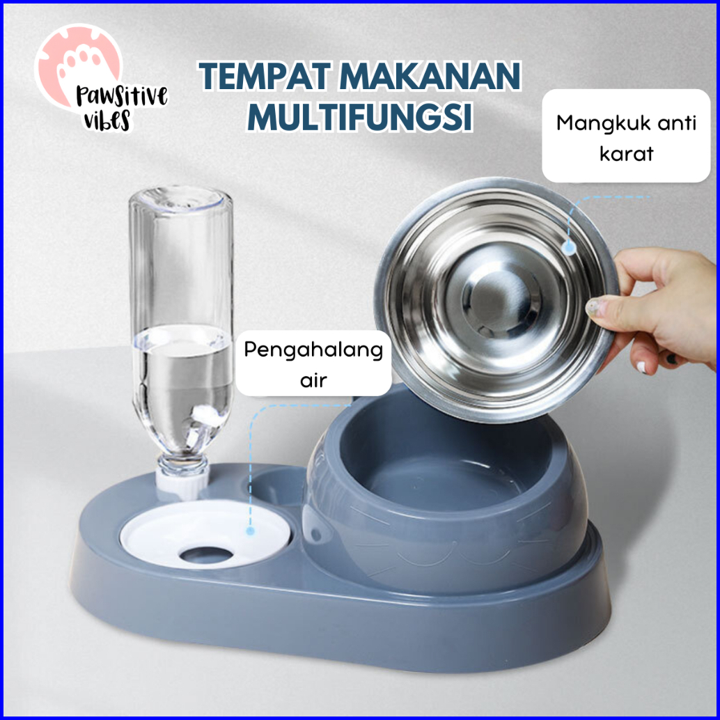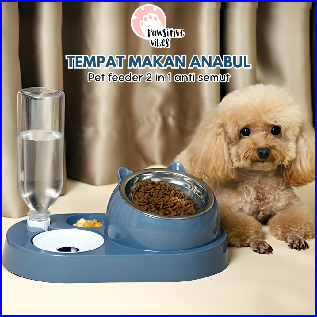 Mangkok Hewan Tempat Makan Hewan Pet Feeder 2 In 1 Anti Semut - Tempat Makan Kucing Anjing 2 In 1 Dengan Mangkok Stainle