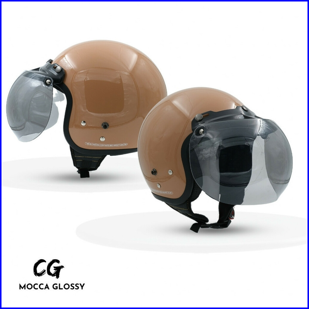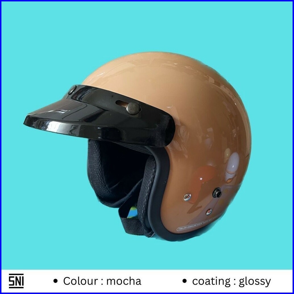 Helm Bogo Dewasa Wanita Pria Mocca Gloss Sni Full Leher