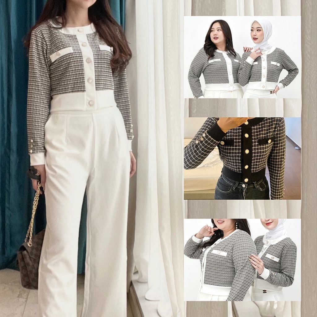 012 Pocket Cardigan XS-XL / Cardigan Kancing Kristal / Cardigan Houndstood / Kardigan/ Tweed / korean style / Knit