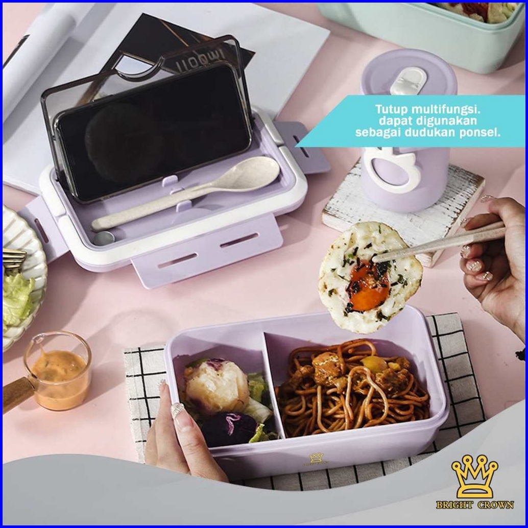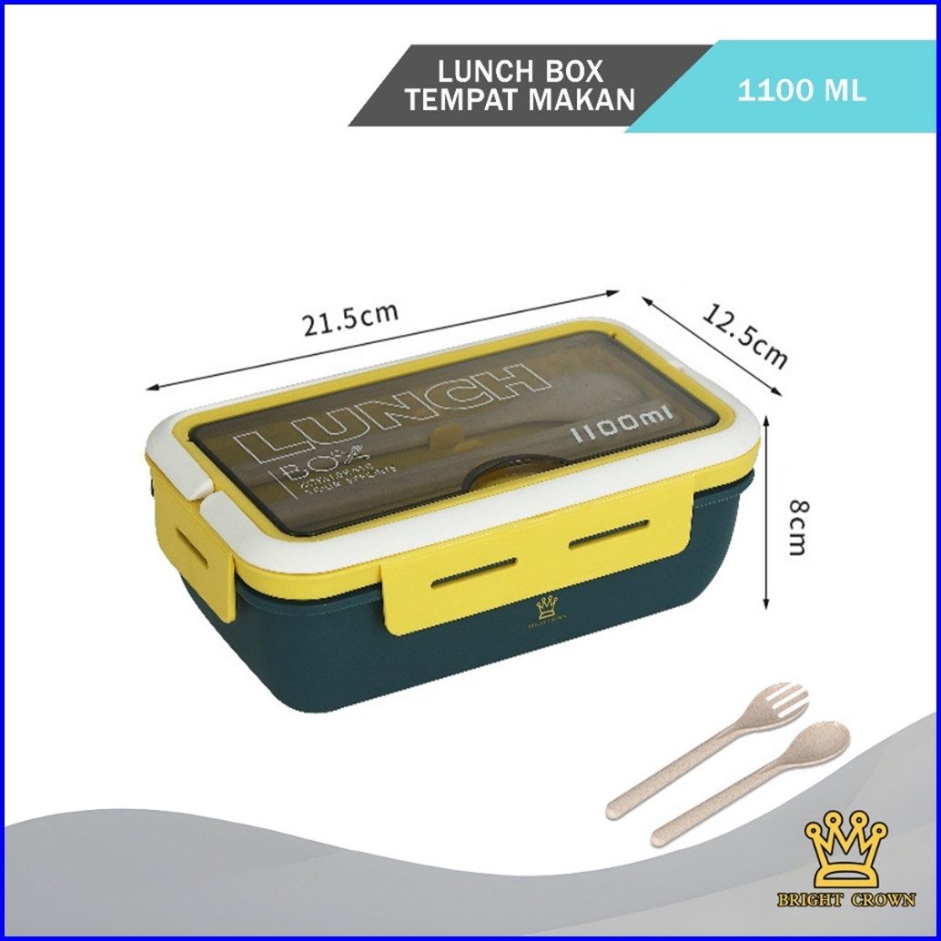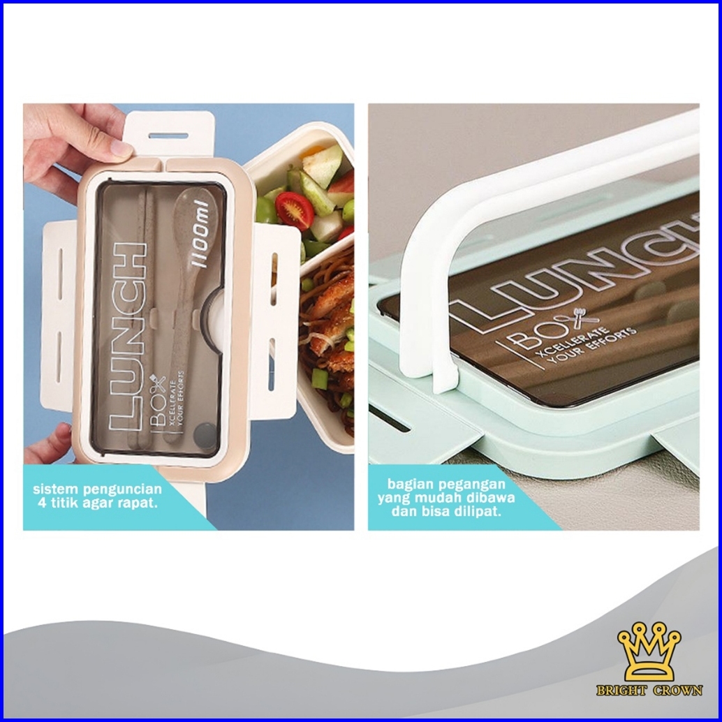 Brigh Crown Lunch Box 2 Sekat Anti Bocor Uk 1100ml Lengkap Free Sendok Garpu Kotak Tempat Makan