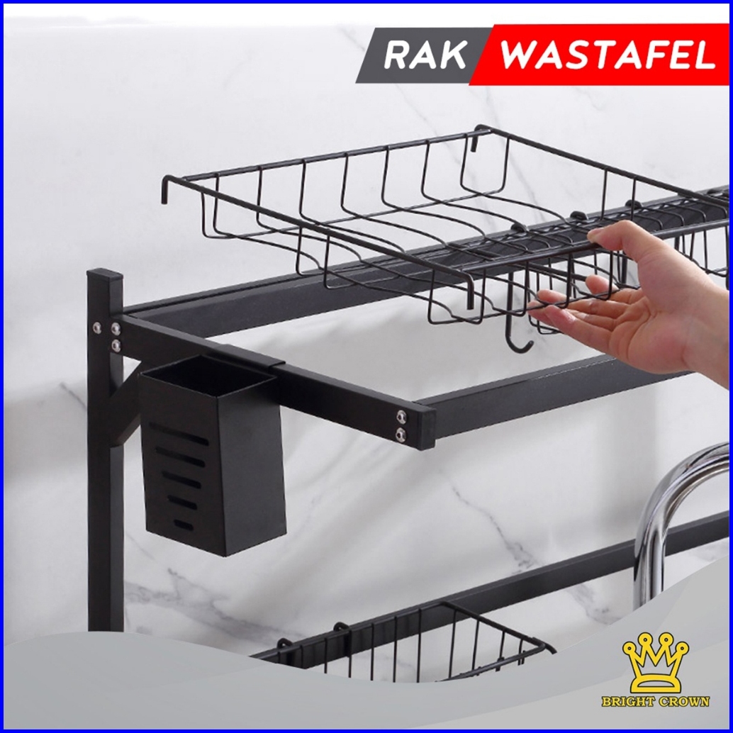 Bright Crown Rak Cuci Piring Wastafel Rak Piring Dapur Rak Dapur Stainless Kokoh Kuat 2 Ukuran