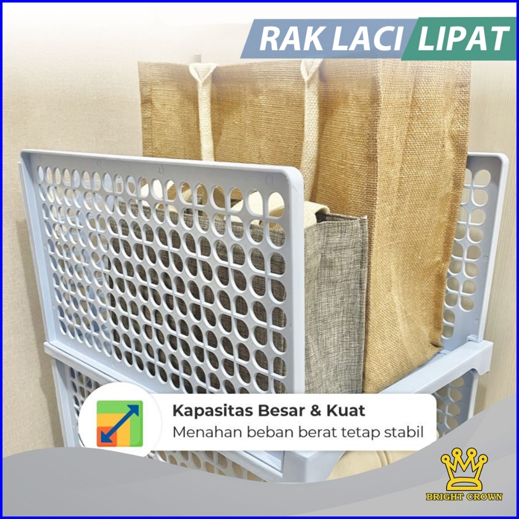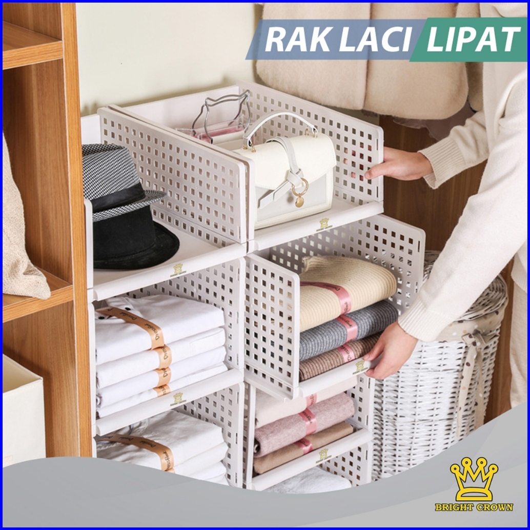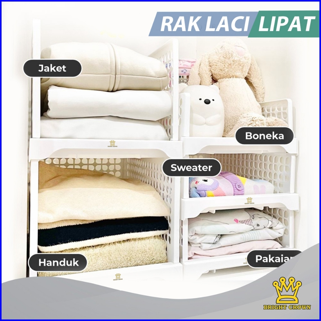 Bright Crown Laci Lipat Rak Baju Storage Susun Rak Geser Serbaguna Tempat Baju Selimut Kaos Kaki