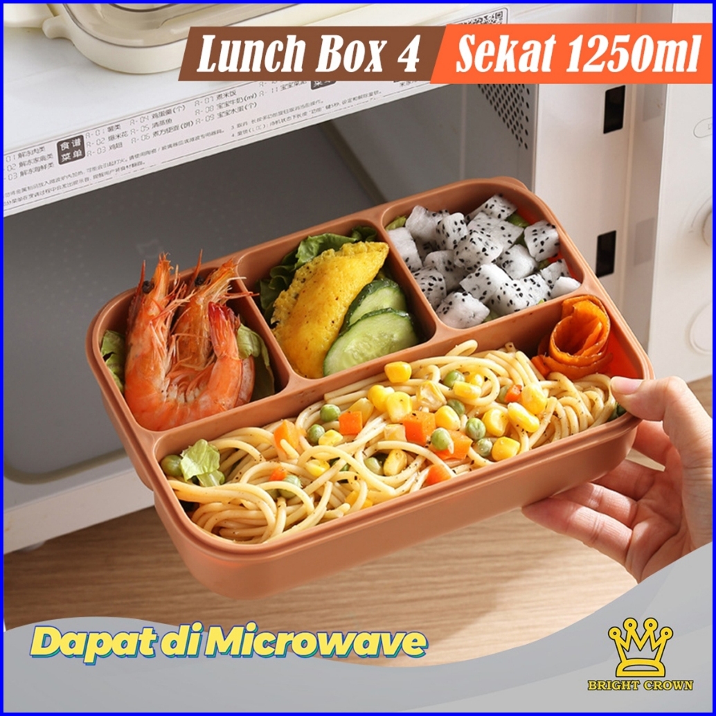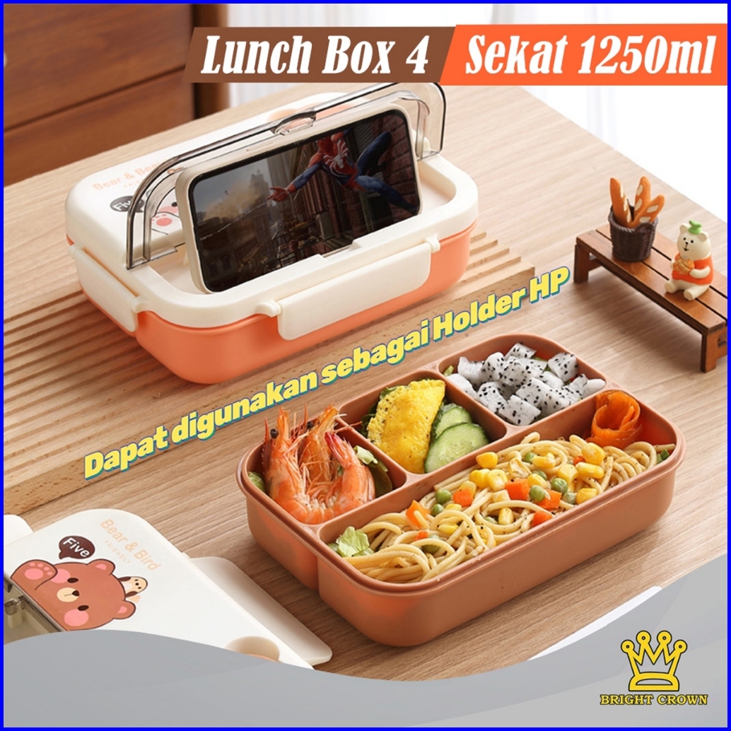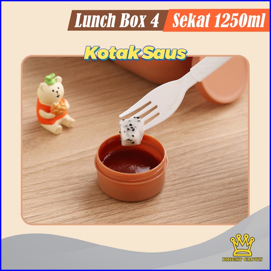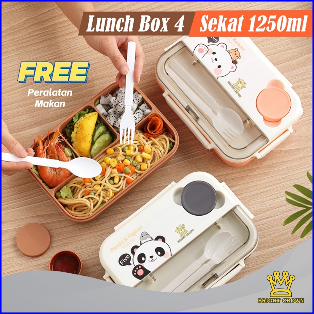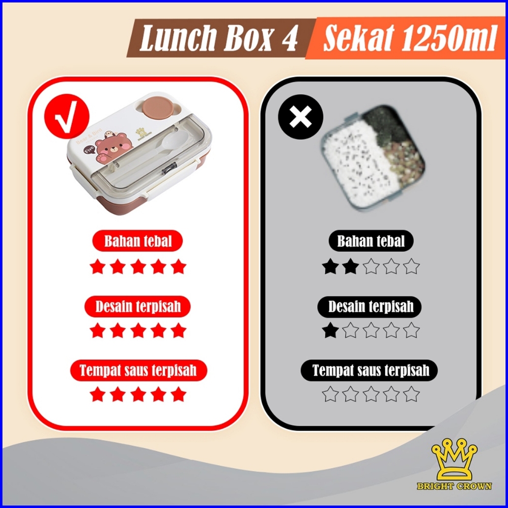 Bright Crown Kotak Bekal 4 Sekat 1250 Ml Motif Karakter Lucu Free Wadah Saus Mini Alat Makan