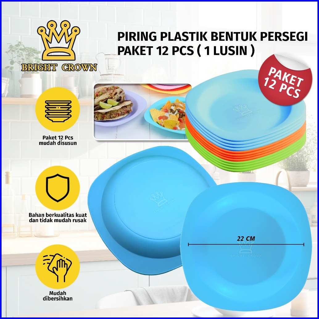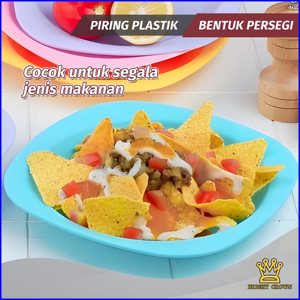Bright Crown Paket 12 Pcs Piring Makan Plastik Persegi 22cm Bahan Tebal Plate Set Of 6 Pcs Bpa Free