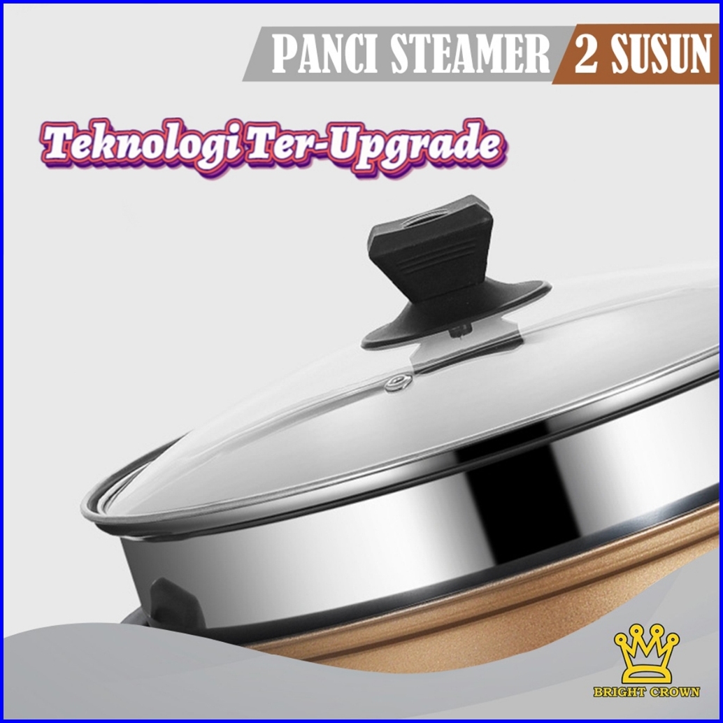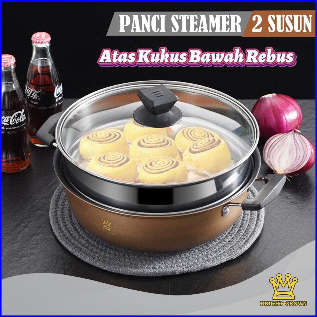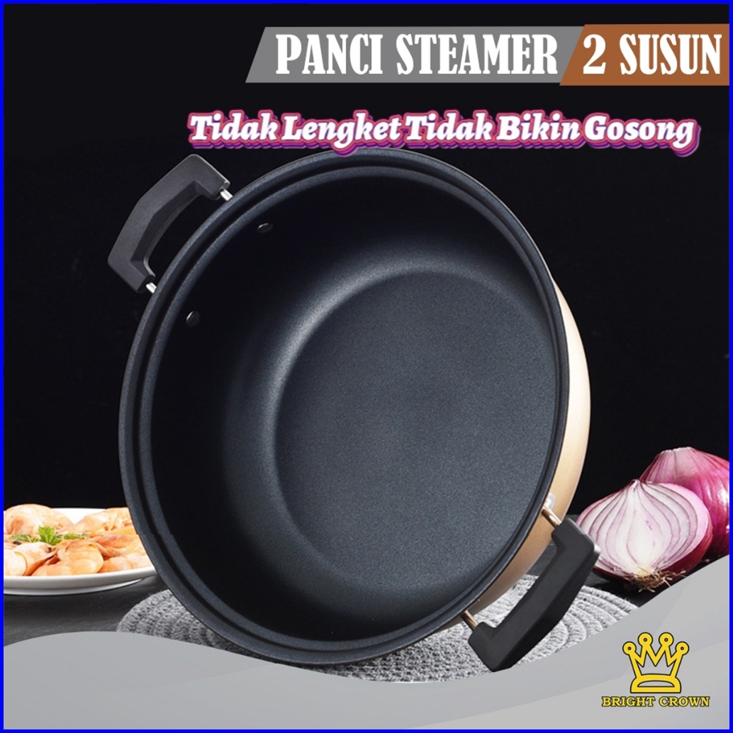 Yatt By Bright Crown Panci Steamer 2 Susun Anti Lengket Uk 28cm Dengan Pengukus High Quality