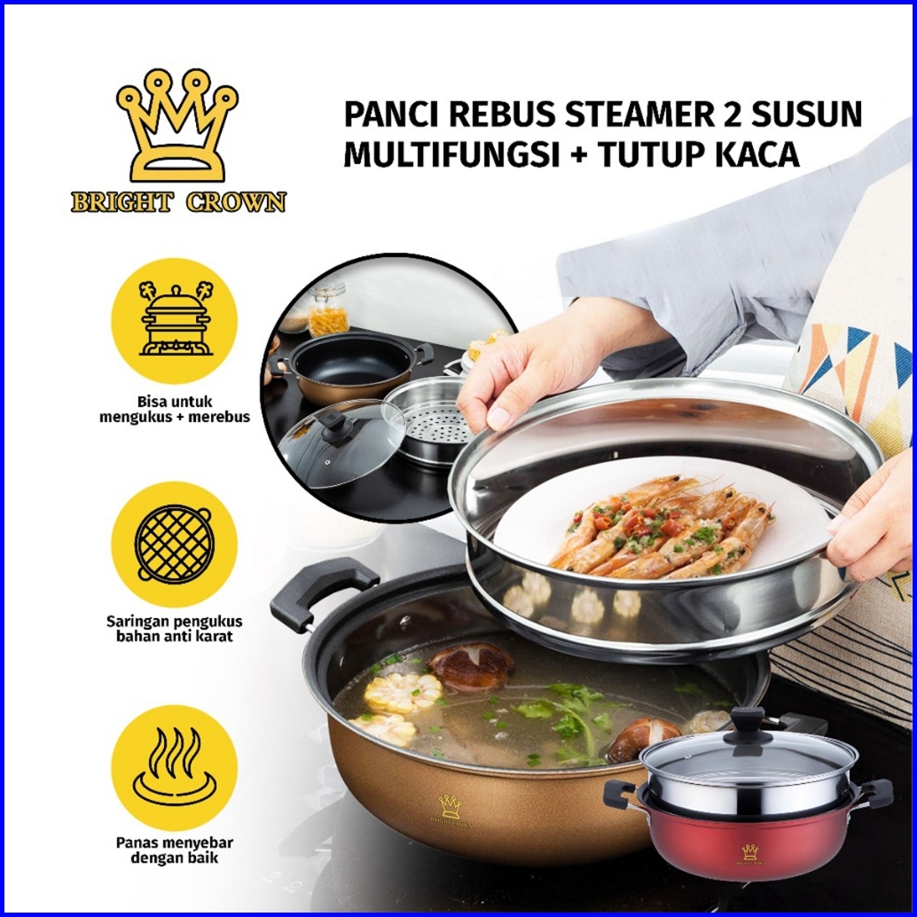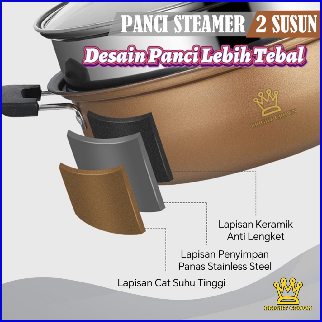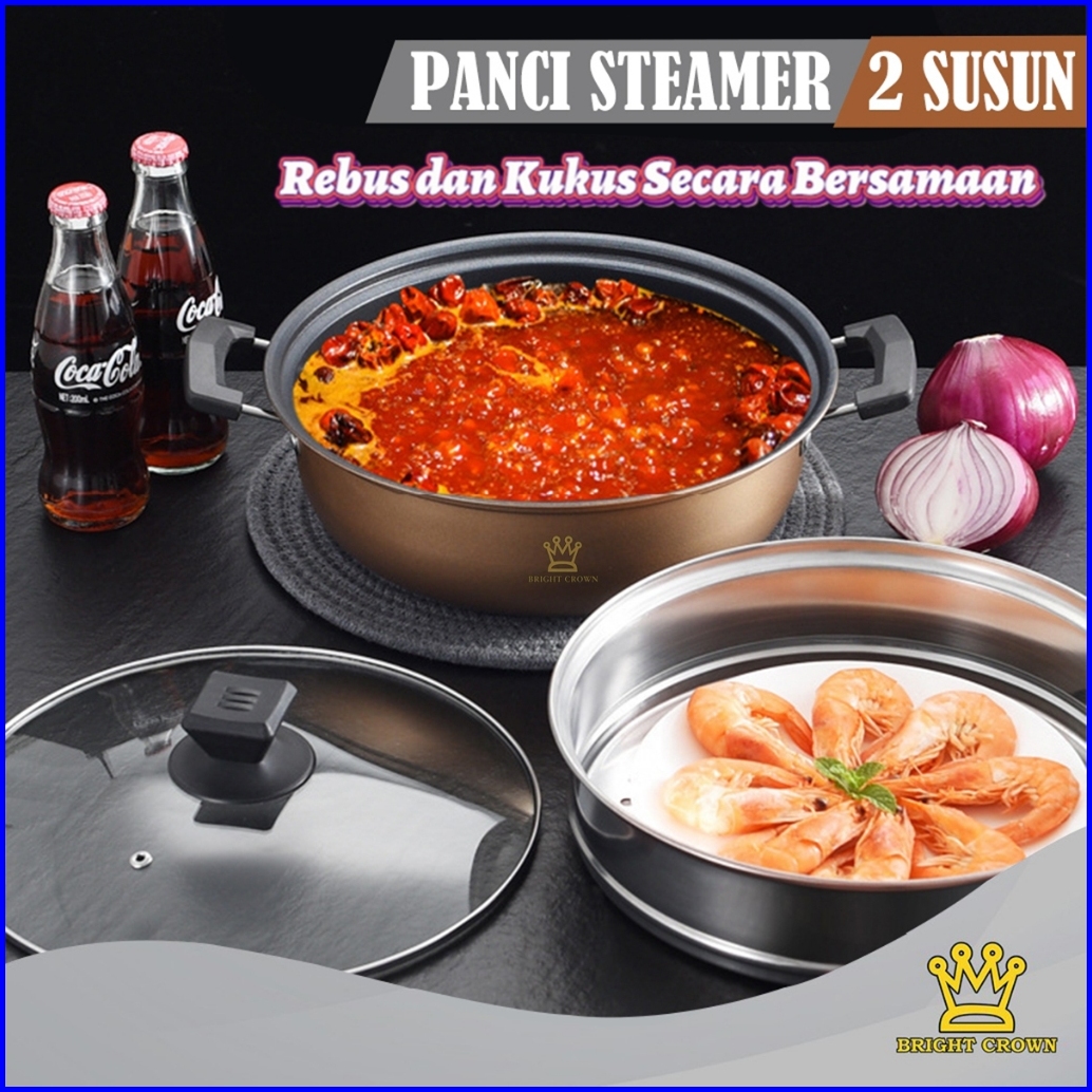 Yatt By Bright Crown Panci Steamer 2 Susun Anti Lengket Uk 28cm Dengan Pengukus High Quality