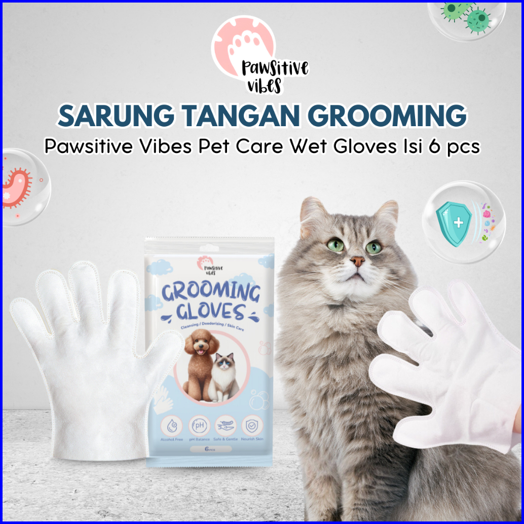 Pawsitive Vibes Pet Care Wet Gloves Isi 6 Pcs - Sarung Tangan Pet Grooming - Sarung Tangan Mandi Kucing Tanpa Air Tanpa