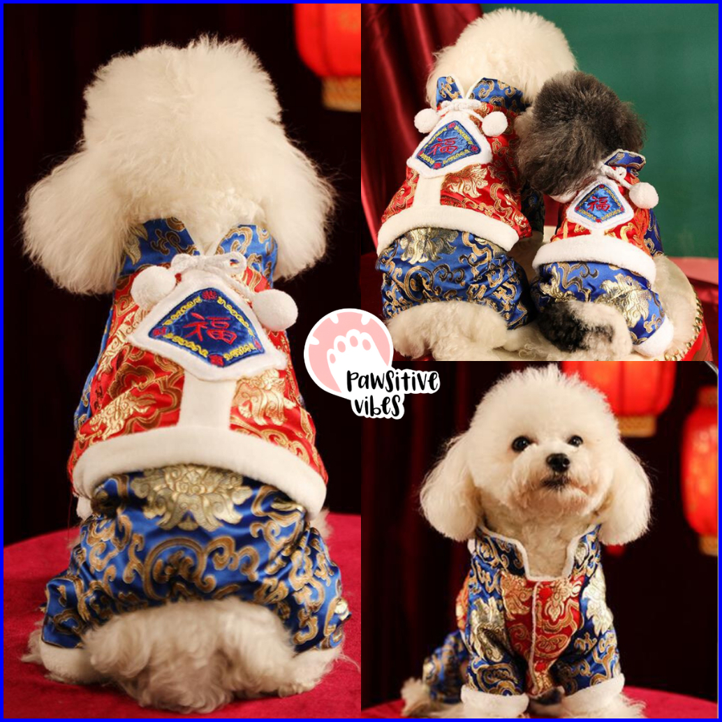 Baju Imlek Cheongsam Anjing Kucing Bahan Premium - Jumpsuit Imlek Anjing Kucing - Lunar New Year Pet Clothes - Kostum Im