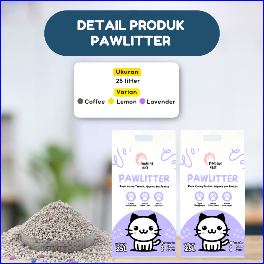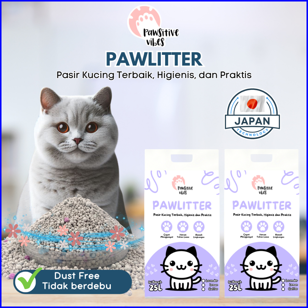 Pawlitter Pasir Kucing Ukuran Besar 25 Litter - Cat Litter - Pasir Kucing Higienis Cepat Menggumpal Dan Mengering - Pasi