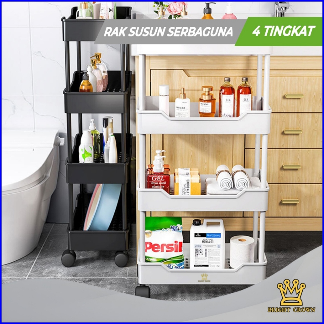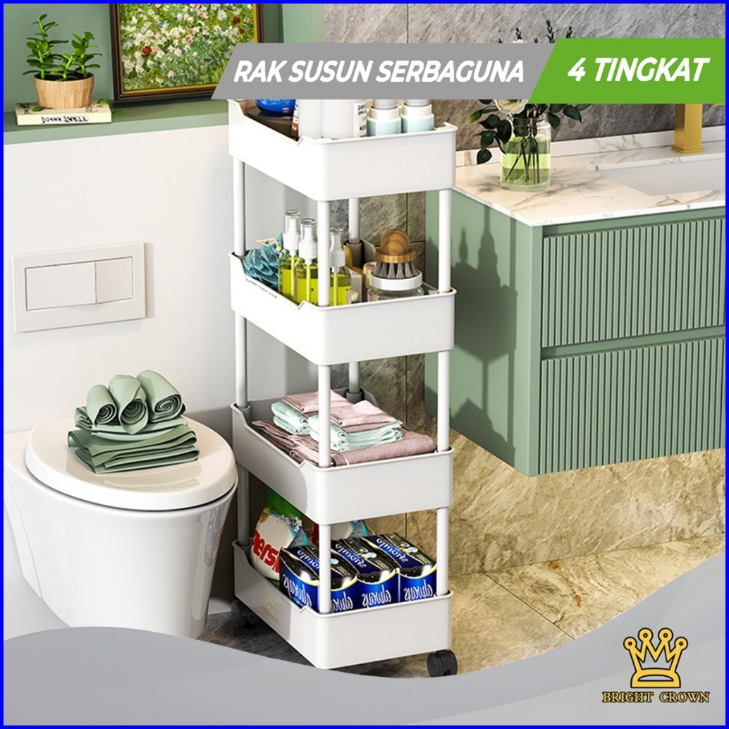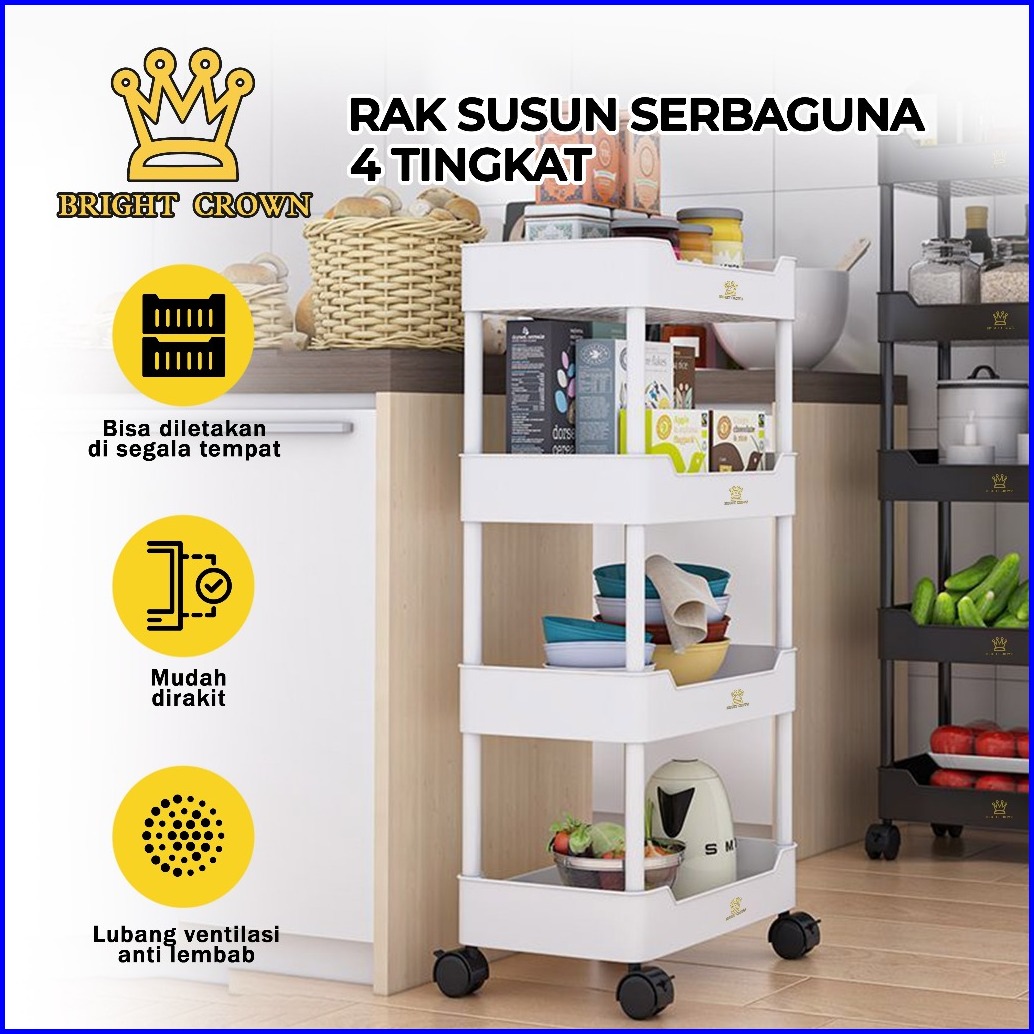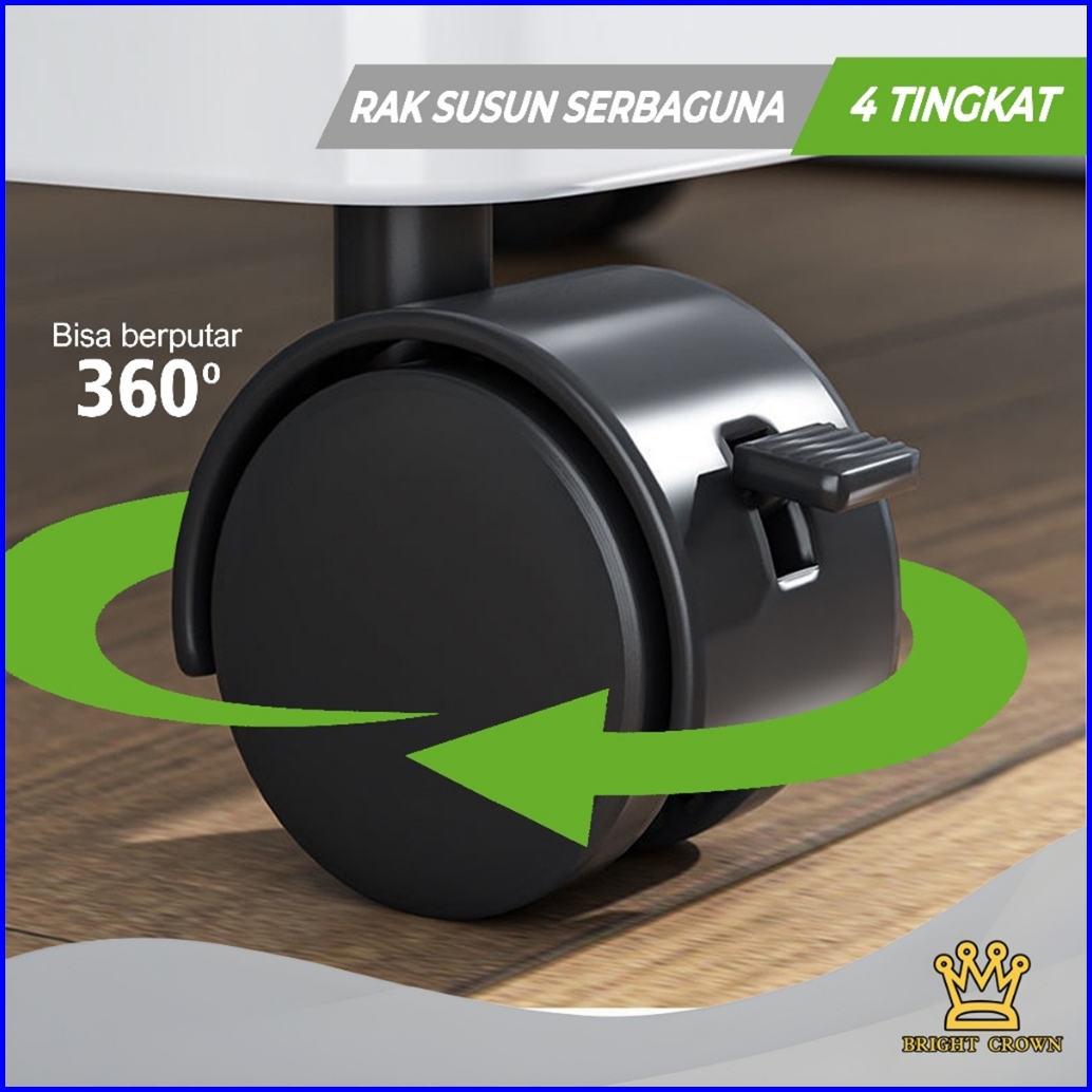 Bright Crown Rak Troli Square Persegi Panjang 4 Susun Dengan Roda Rak Plastik Dapur Kamar Mandi