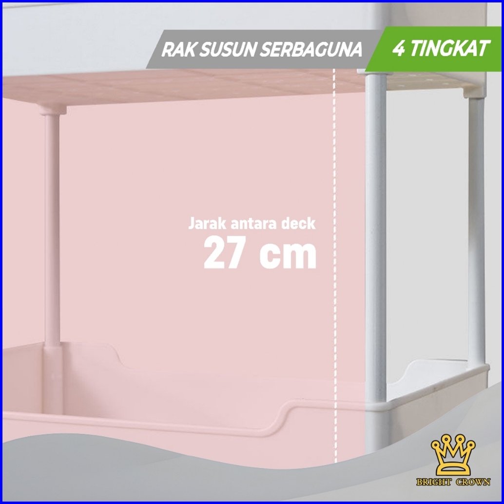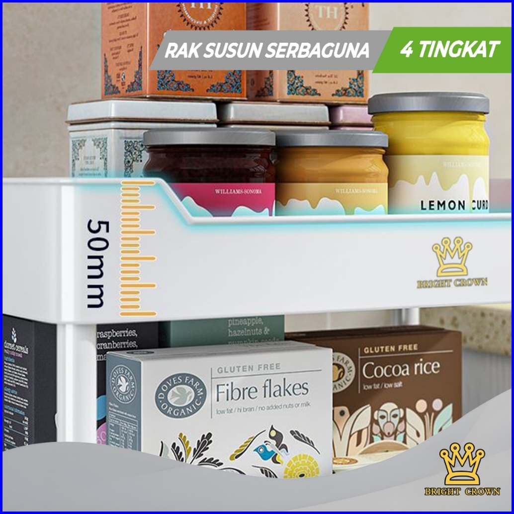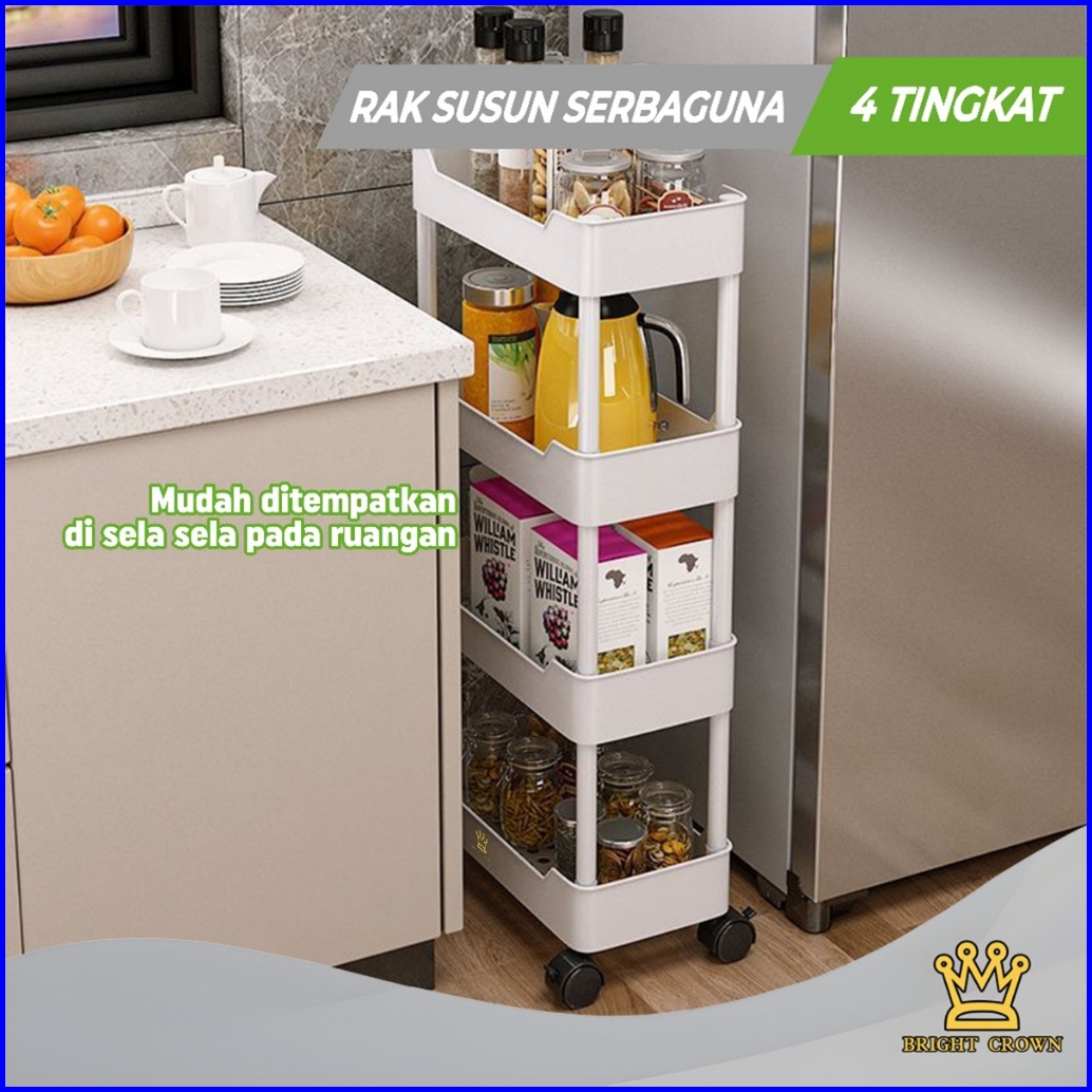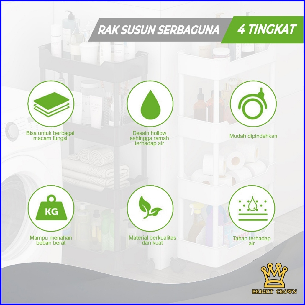 Bright Crown Rak Troli Square Persegi Panjang 4 Susun Dengan Roda Rak Plastik Dapur Kamar Mandi