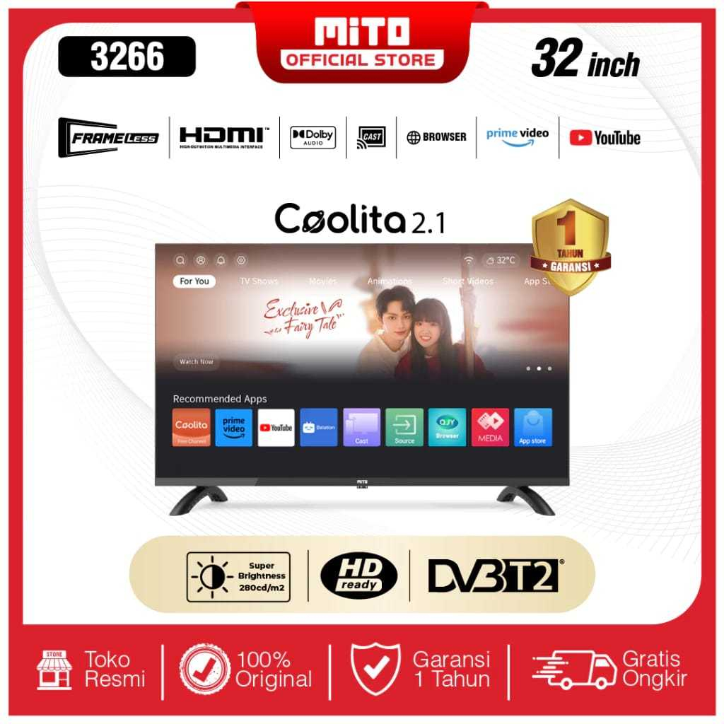 MITO - Smart LED TV 3266 32 Inch - OS Coolita 2.1 - HD Ready / DVB T2 / Dolby Audio / YouTube / Prime Video garansi resm