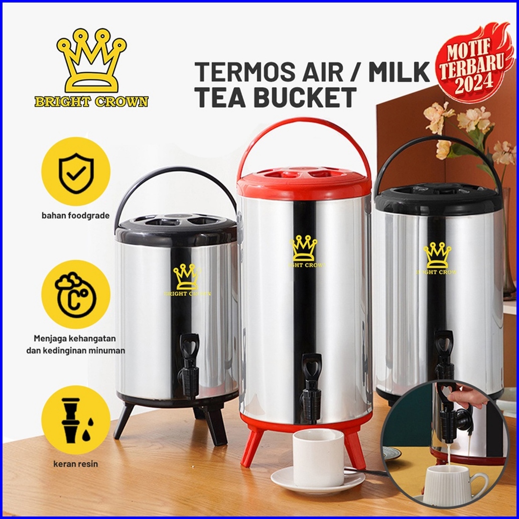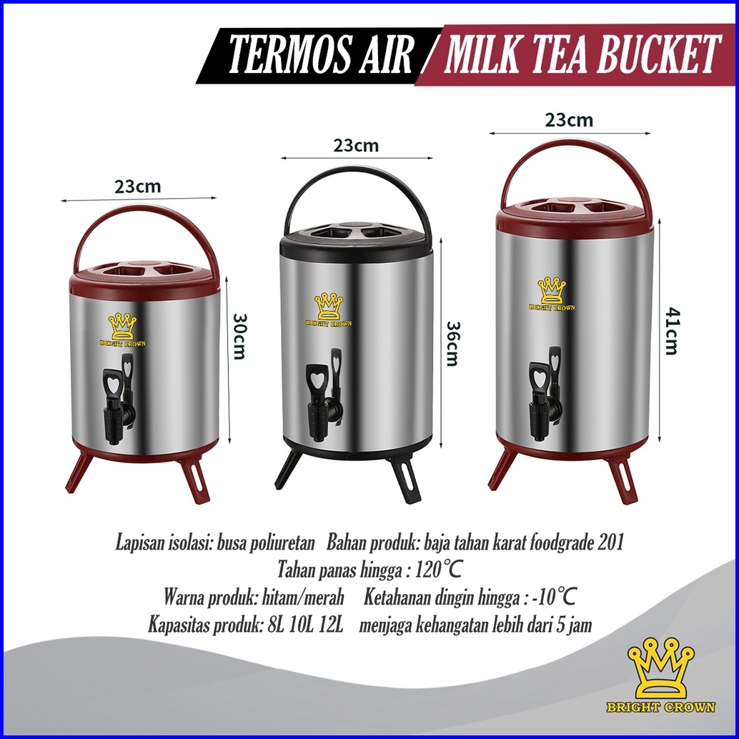 Bright Crown Milk Tea Bucket Stainless 8l 10l 12l Dispenser Minuman Serbaguna Termos Air Keran