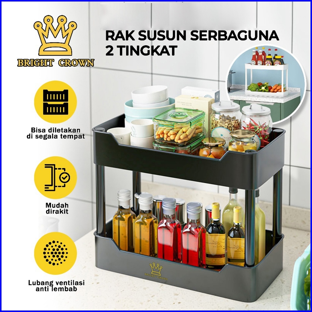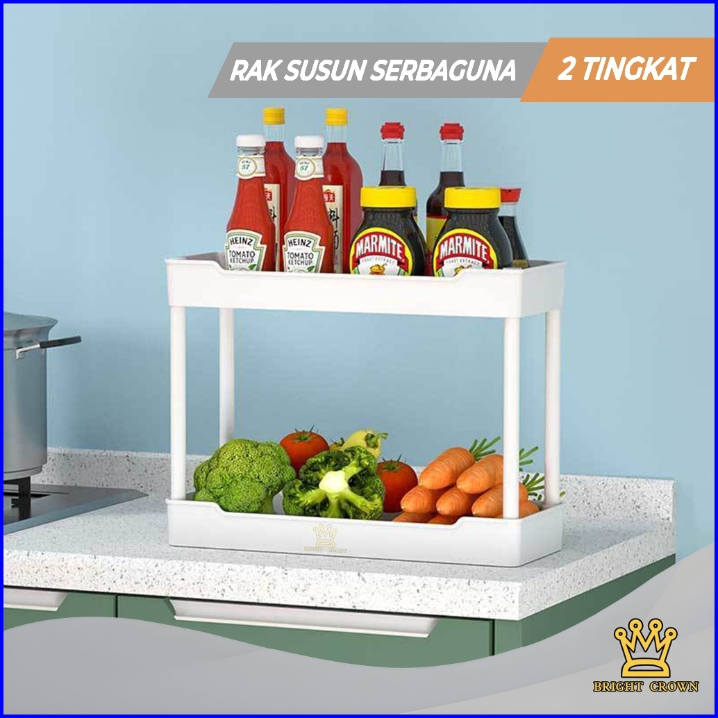 Bright Crown Dapur Plastik Rak 2 Tingkat Troli Susun Kuat Kokoh Tempat Penyimpanan Barang Terbaru