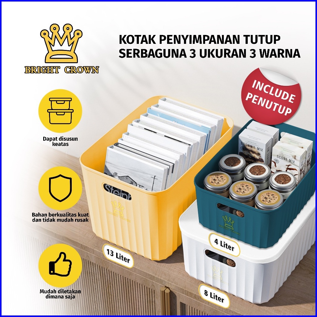 Bright Crown Kotak Penyimpanan Plastik Tutup Serbaguna Box Storage Container Organiser Aesthetic