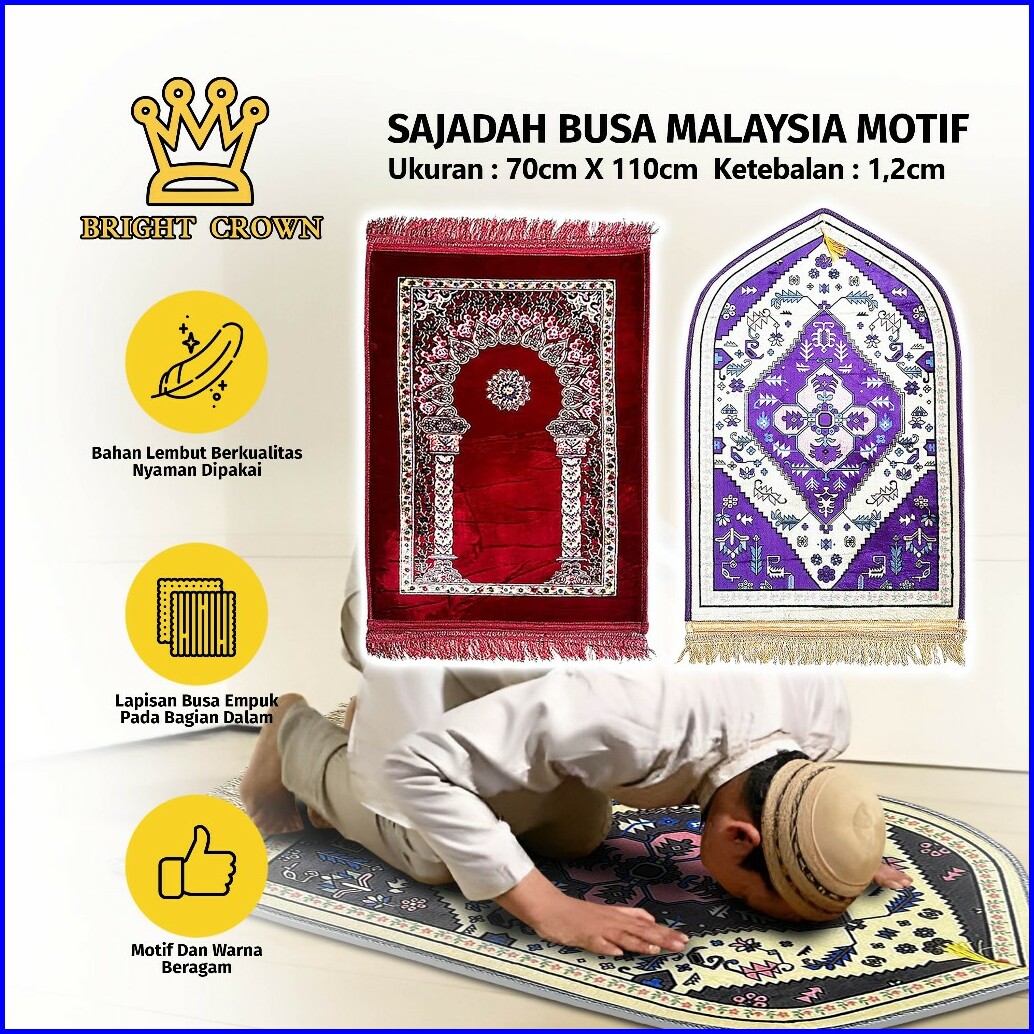 Bright Crown Sajadah Malaysia Motif Turki Bahan Busa Tebal 12mm Empuk Premium Alas Anti Slip