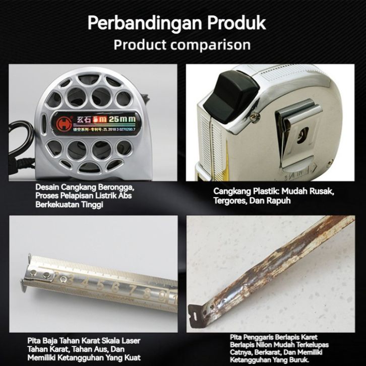7.5m/3m/5m Alat Ukur Meteran Roll ABS Panjang Stainless Tebal Industri Presisi Tinggi Bahan Stainless Steel Tebal Tahan
