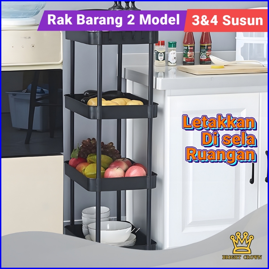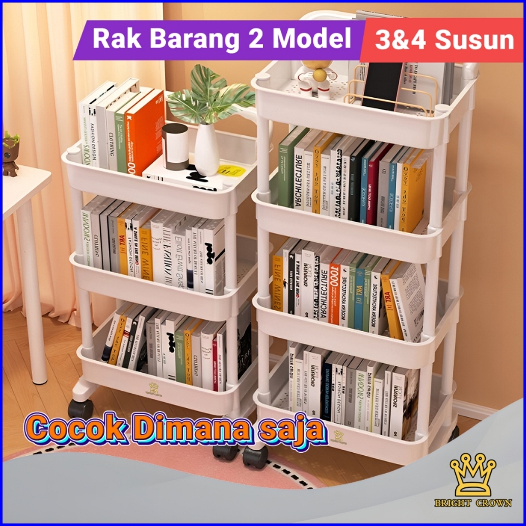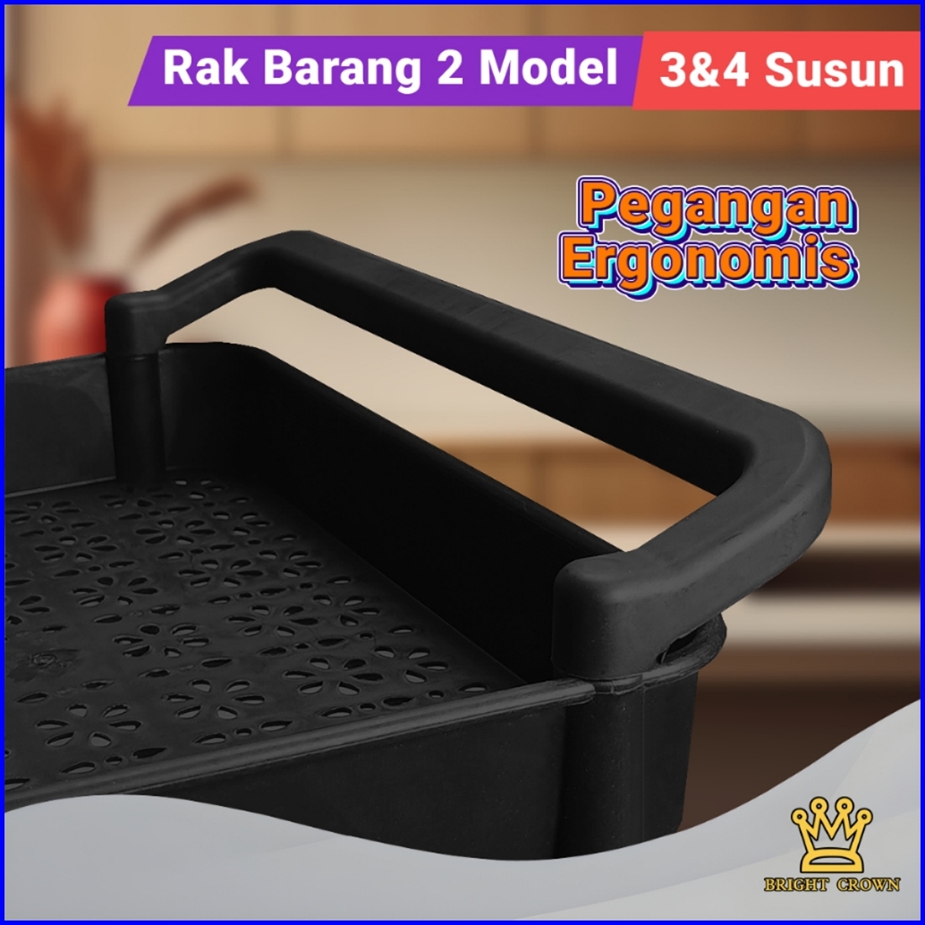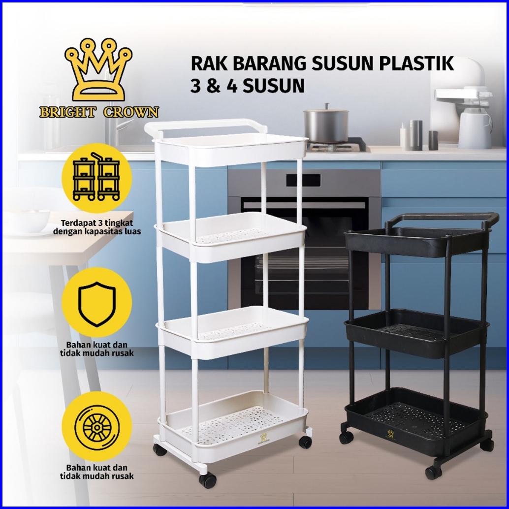 Bright Crown Rak Penyimpanan Barang Plastik 3 4 Susun Dengan Roda Pegangan Rak Multibaby Serbaguna