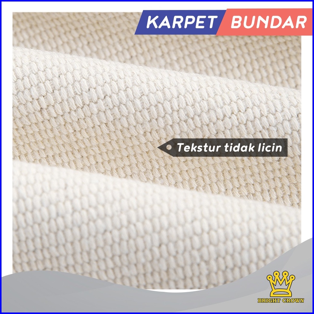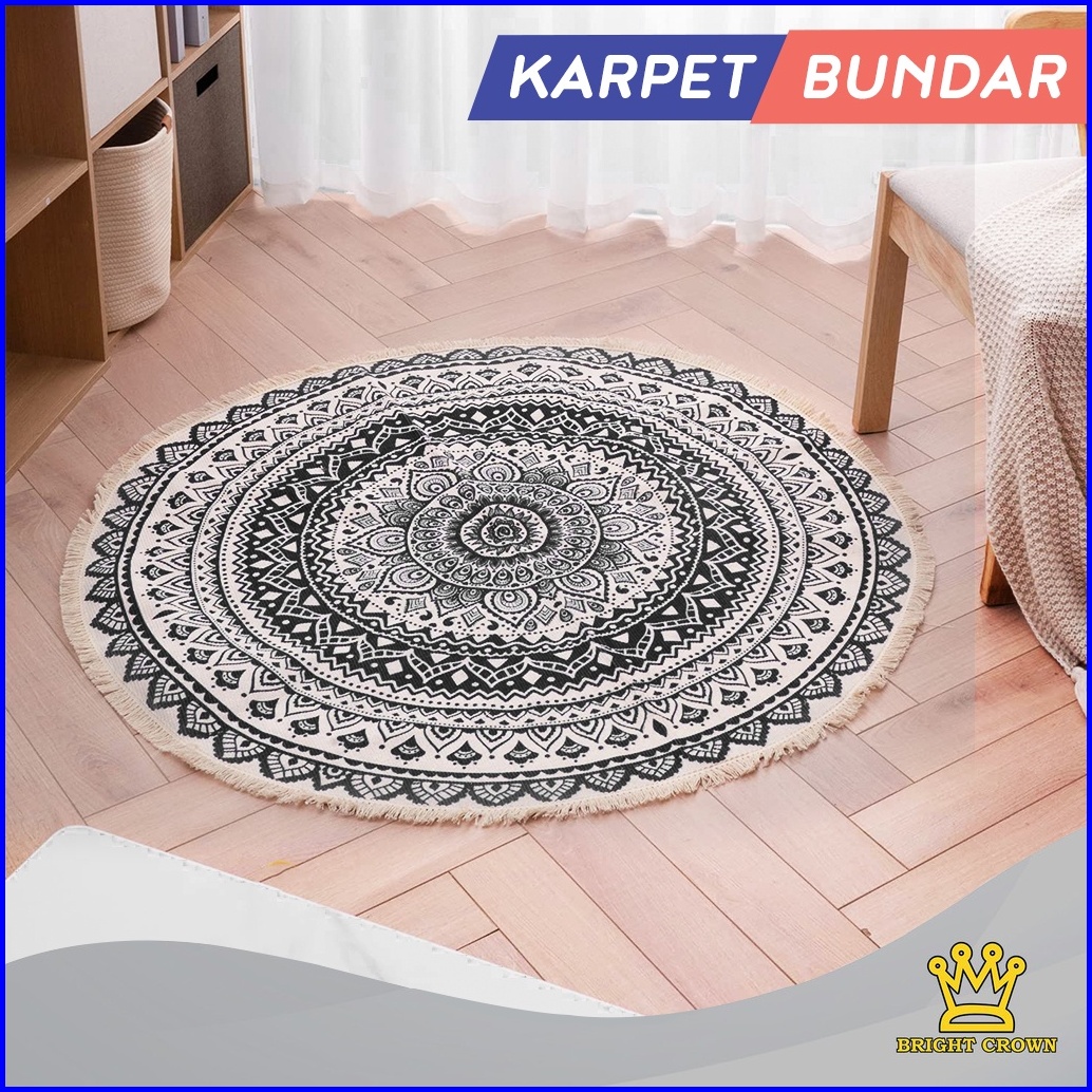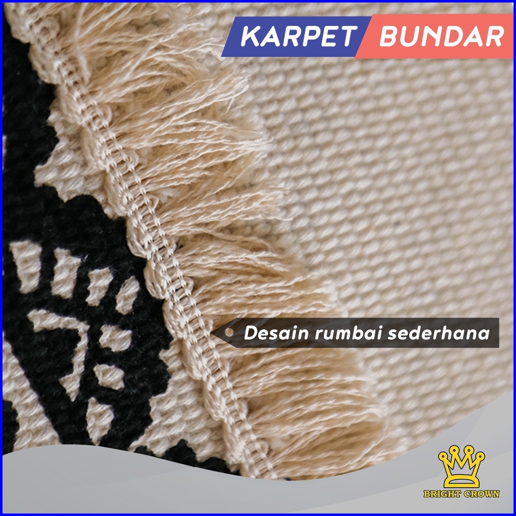 Bright Crown Promo Beli Lokal Keset Karpet Katun Tenun Linen Bohemian Bentuk Bundar Monokrom 90x90cm