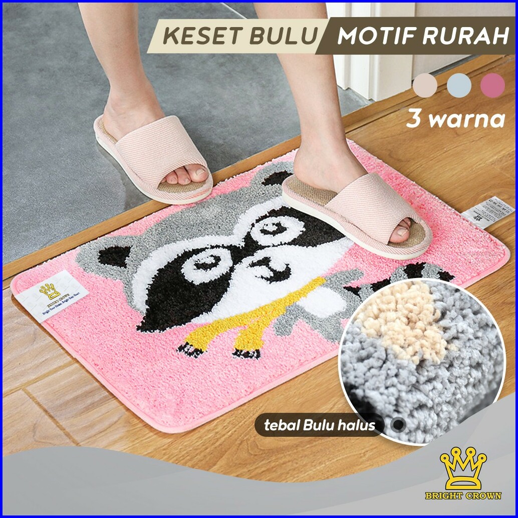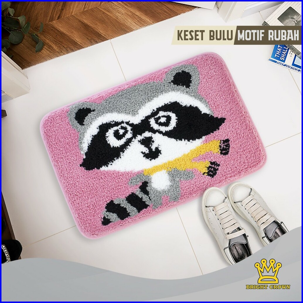 Bright Crown Keset Bulu Motif Rakun Keset Bulu Rumah Animal 40x60cm 3 Warna Import