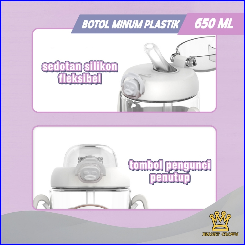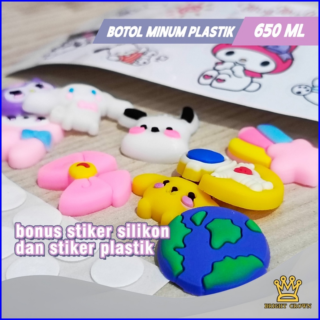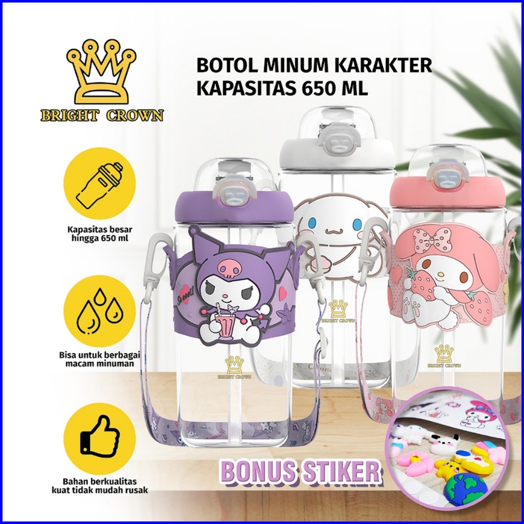 Brightcrown Botol Minum Anak 650ml Karakter Kartun Sanrio Lucu Free Stiker 3d Tali Strap Highquality