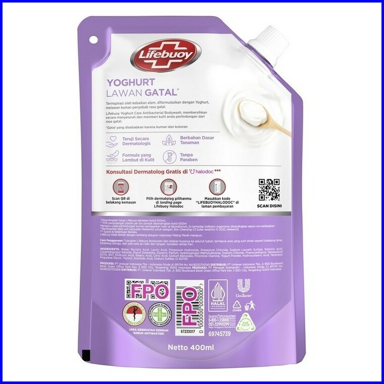Lifebuoy Menghaluskan Kulit Sabun Mandi Cair Refill Yoghurt Care 400 Ml