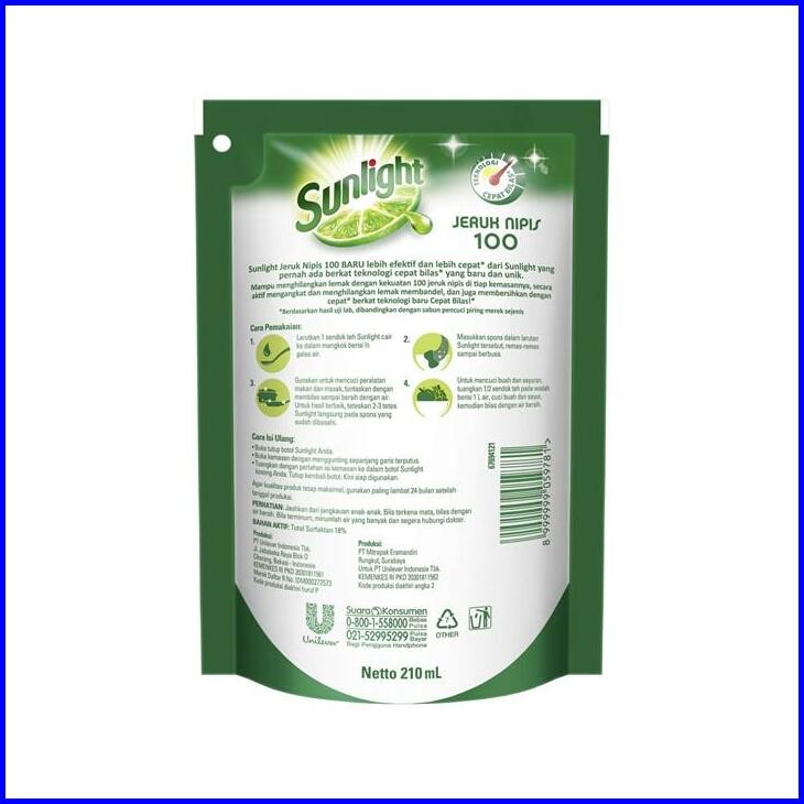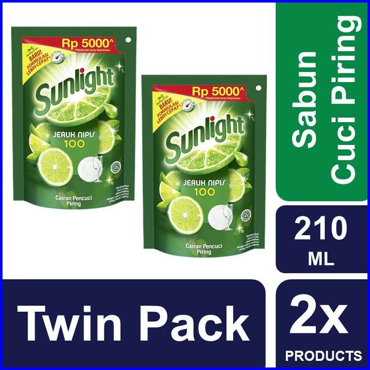 Sunlight Sabun Cuci Piring Jeruk Nipis Refill 210 Ml Twinpack