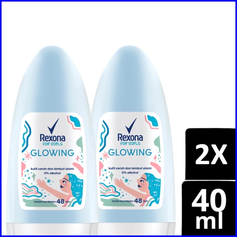 Rexona Roll On Deodorant Wanita Glowing 0 Alkohol Wangi Formula Pencerah 40ml X2
