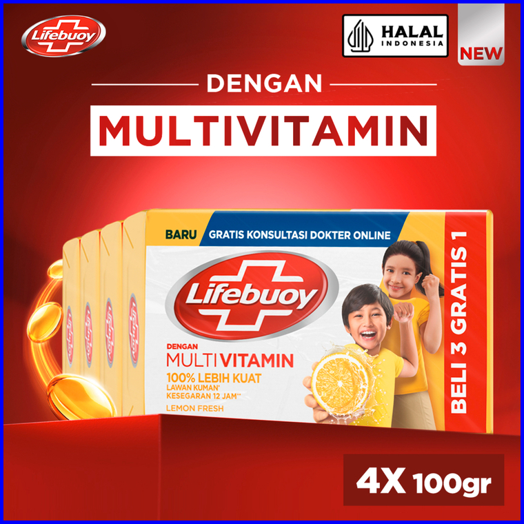 Lifebuoy Mencegah Bau Badan Sabun Batang Antiseptik Lemon Fresh 4x100g