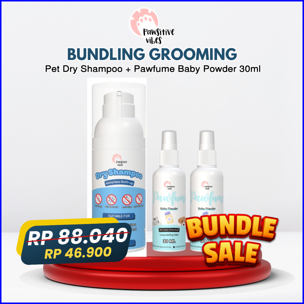Pawsitive Vibes Bundling Grooming Pet Dry Shampoo Busa Tanpa Air Untuk Anjing Parfum Pewangi Anjing Kucing 30ml