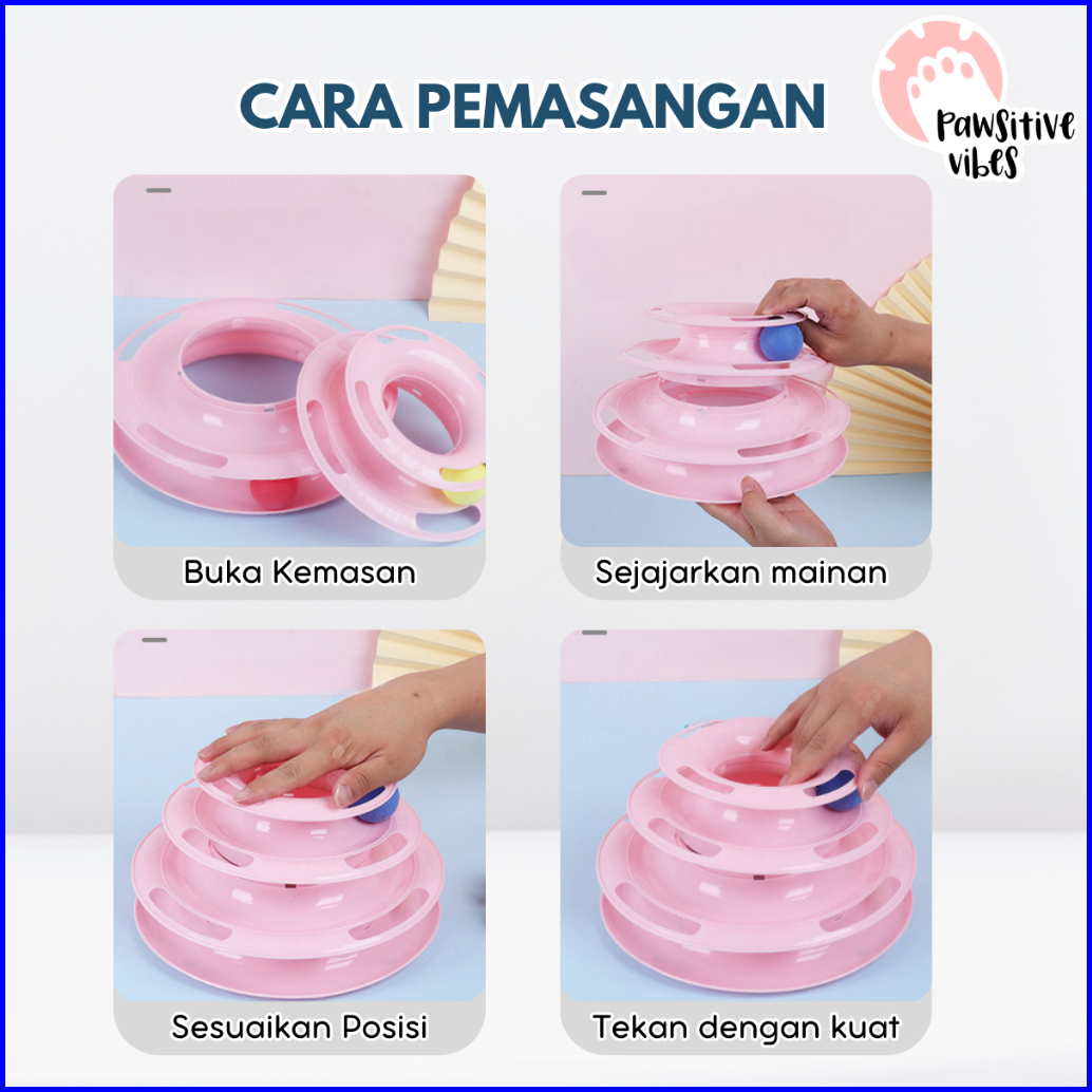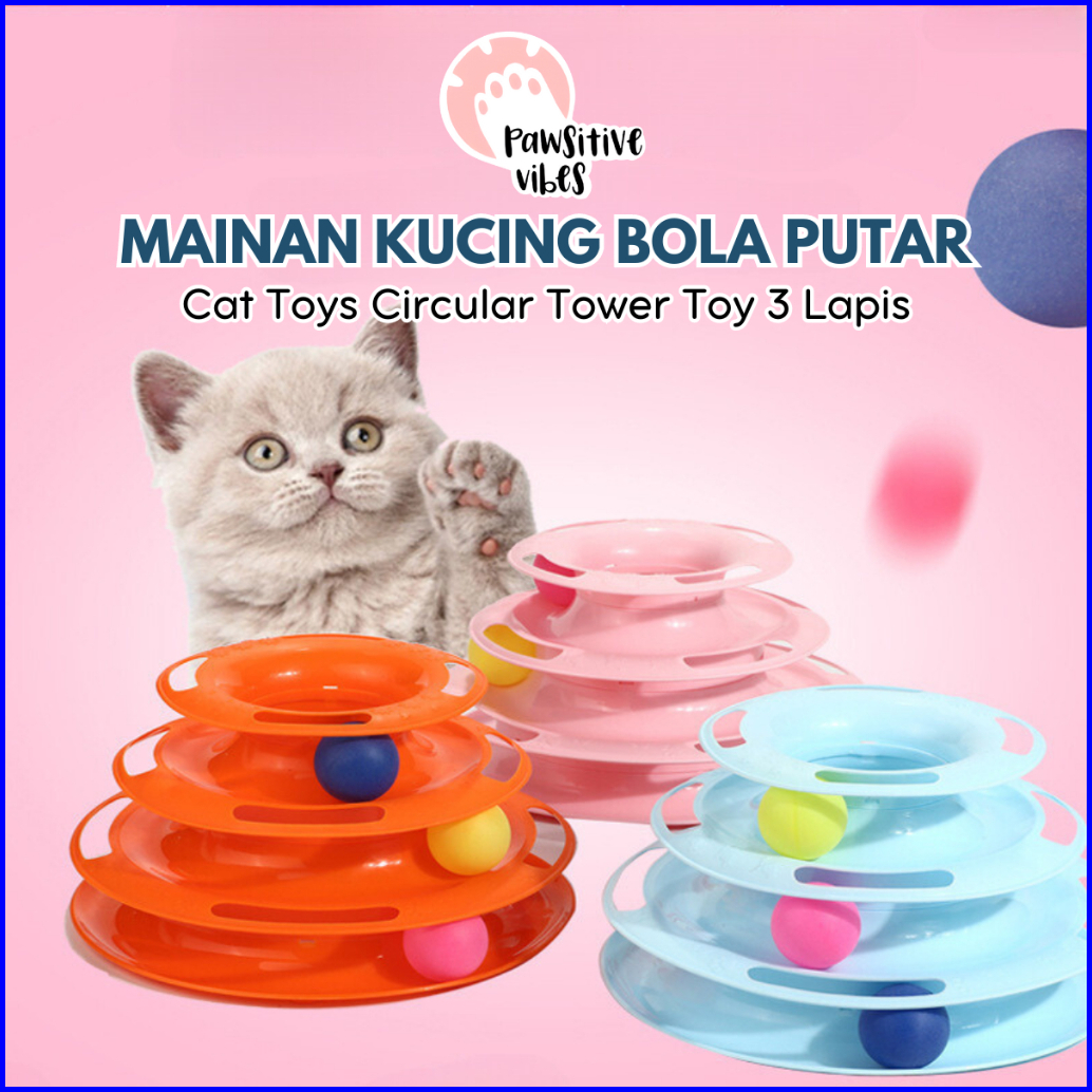 Mainan Kucing Bola Putar - Lucu Interaktif Cat Toys Circular Tower Toy 3 Lapis