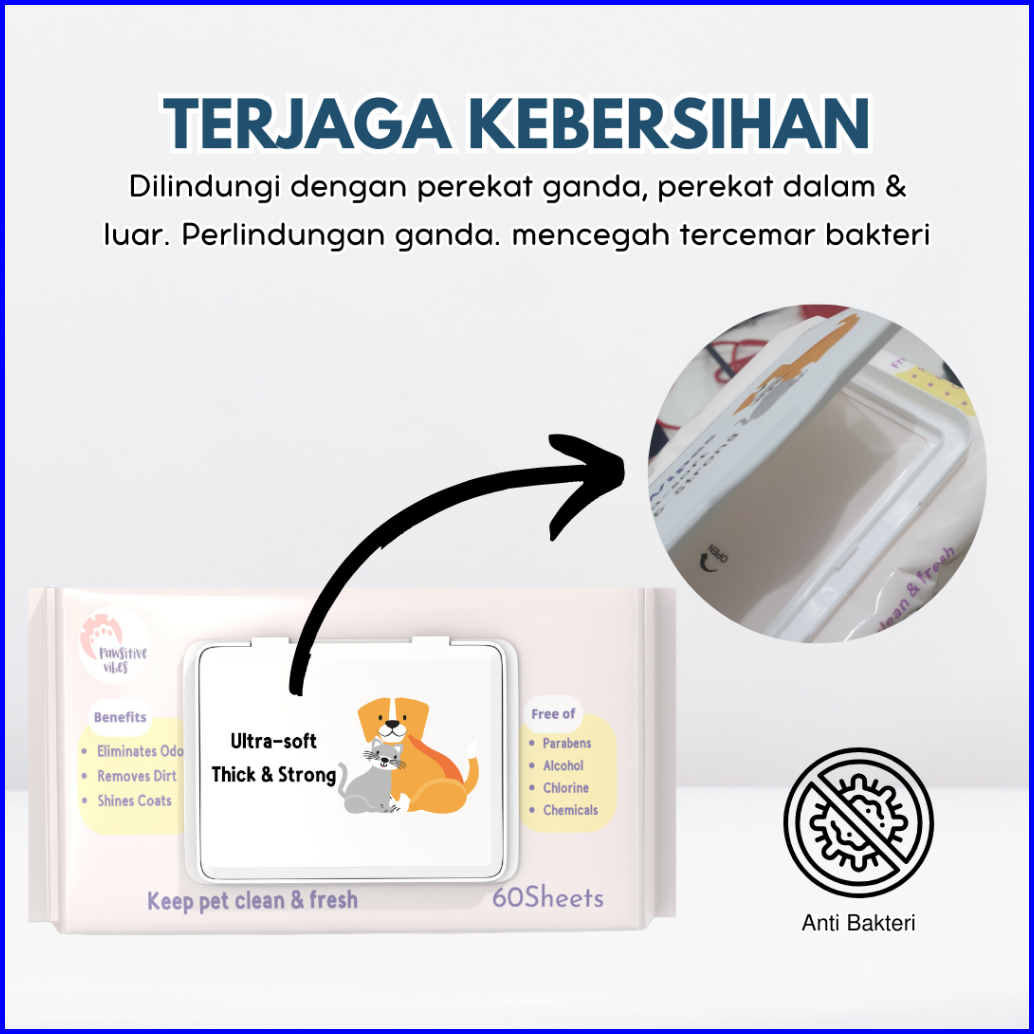 Pet Soft Pet Wipes 60pcs Tissue Basah Hewan Anjing Kucing Pet Wipes Tisu Basah Kucing Anjing Grooming Hewan Murah Handuk