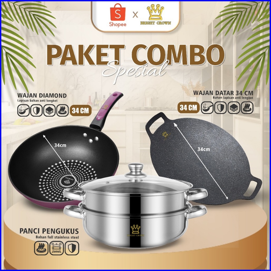 Yatt By Bright Crown Pakethemat Wajan Diamond 34cm Panci Steamer 28cm Stainless Wajan Bbq Datar 34cm