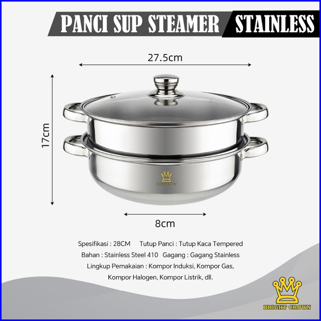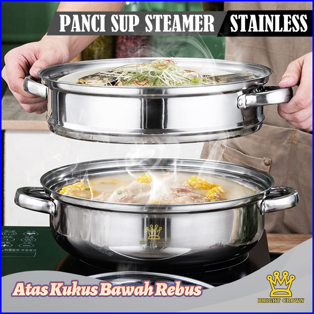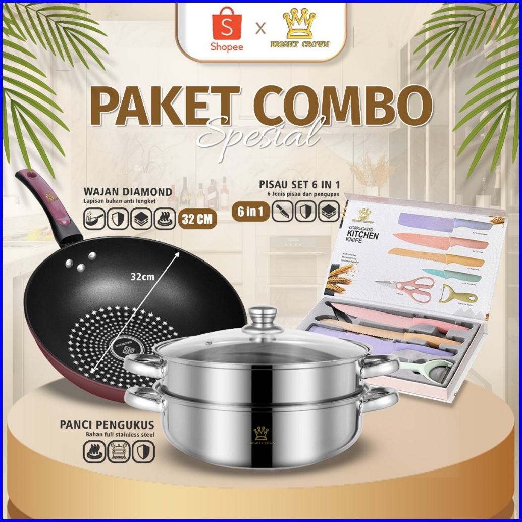 Yatt By Bright Crown Super Hemat Wajan Penggorengan Diamond 34cm Panci Steamer 28cm Pisau Dapur Set