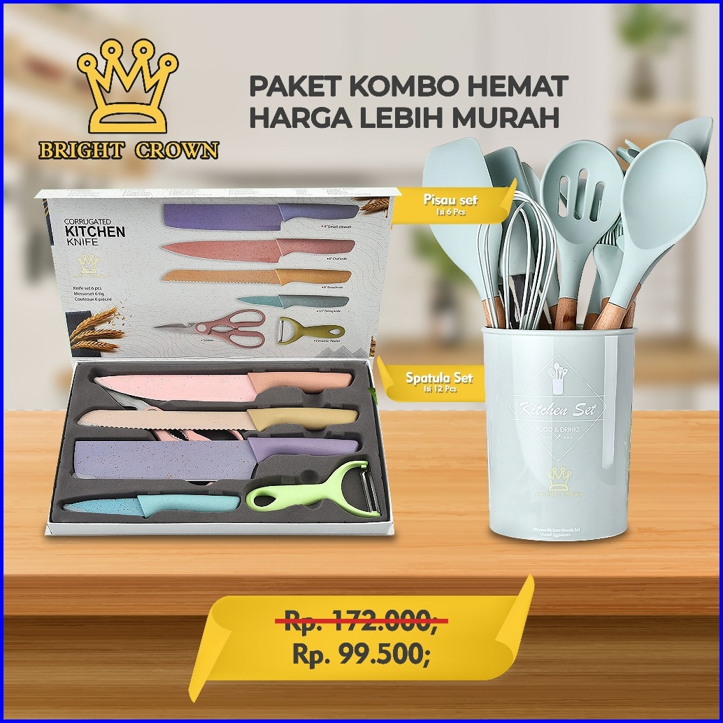 Bright Crown Paket Menang Banyak Spatula Silicone Set Tahan Panas 12 Pcs Pisau Dapur Set 6 In