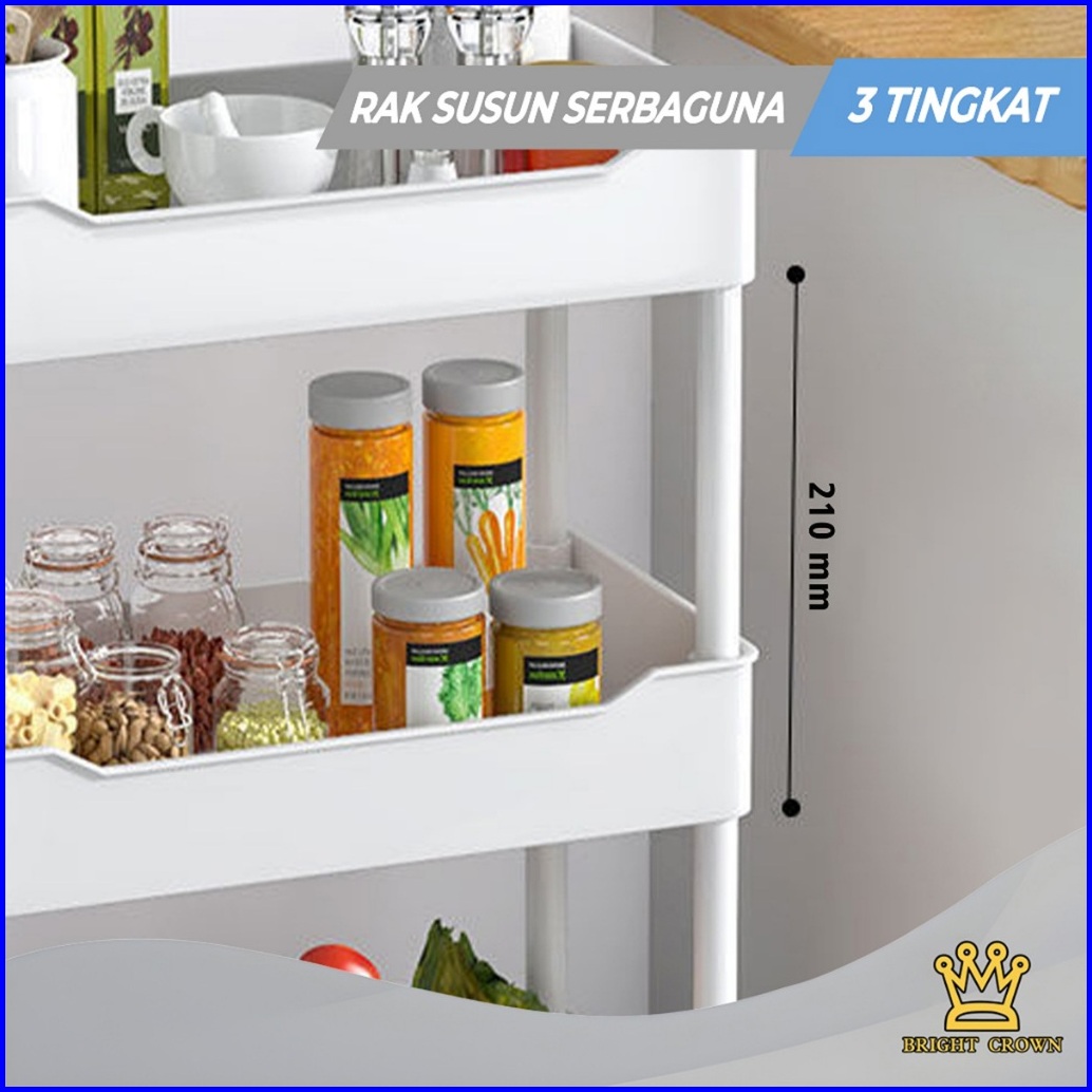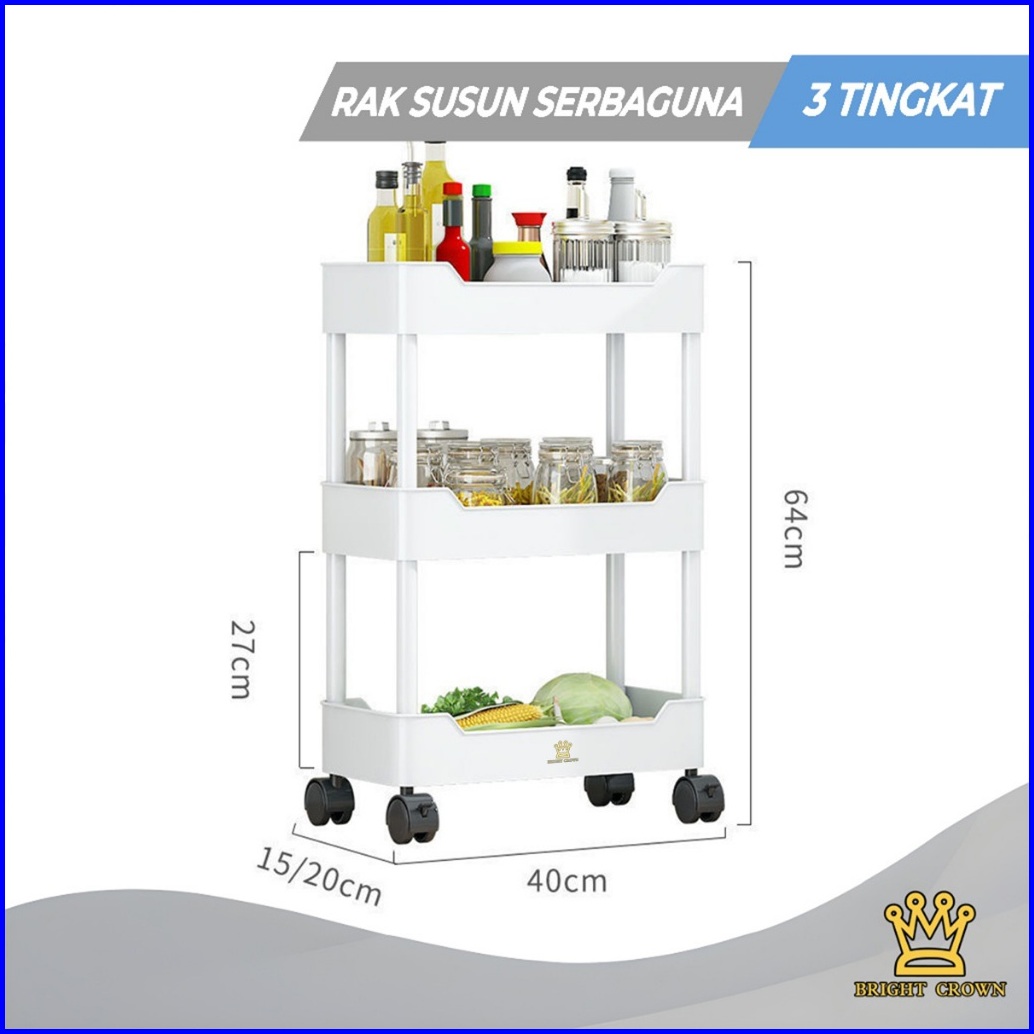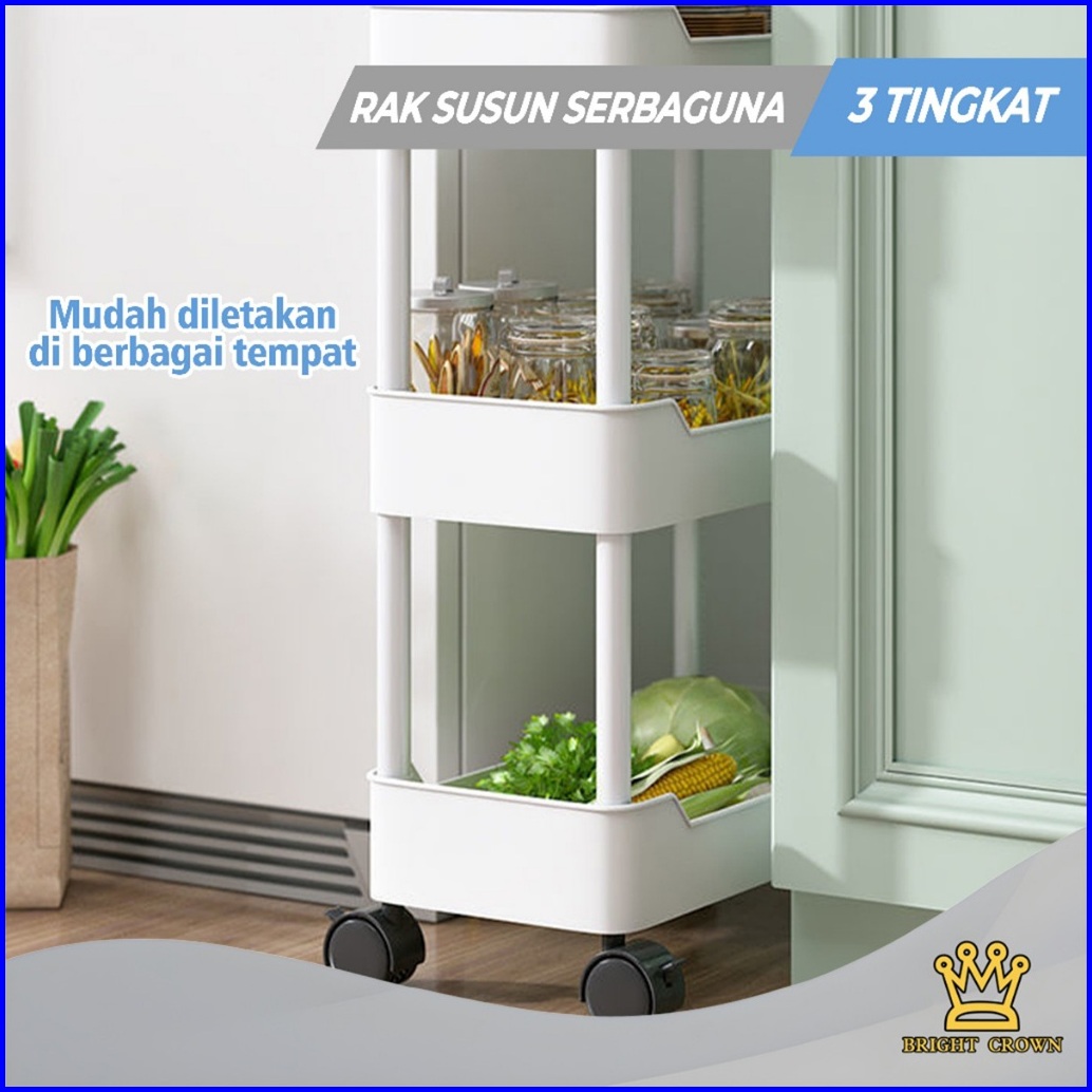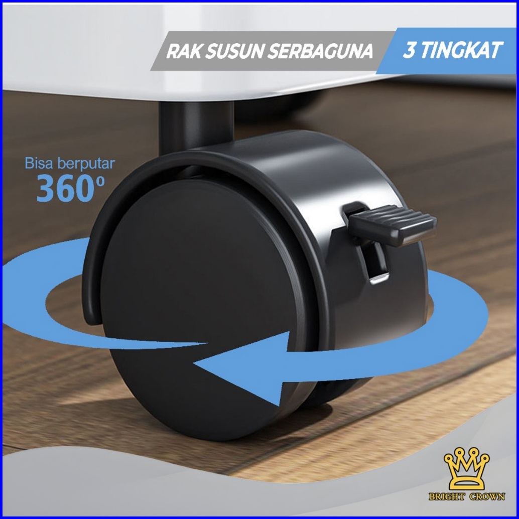 Bright Crown Rak Troli Roda Serbaguna 3 Susun Minimalis Rak Kamar Mandi Dapur Persegi Panjang