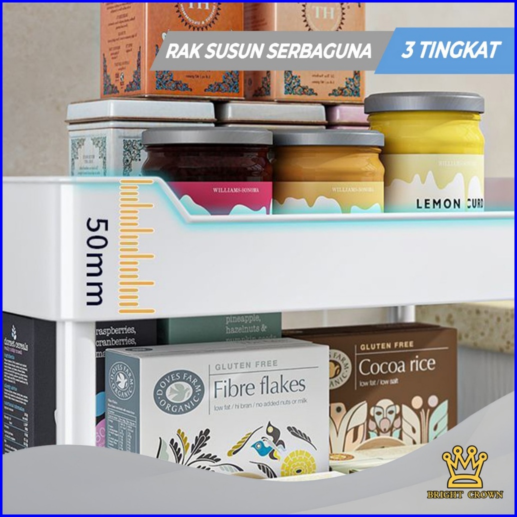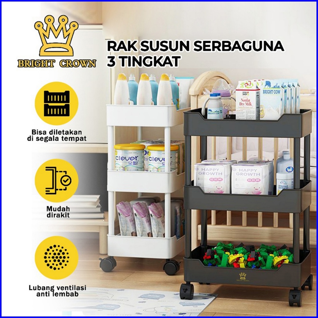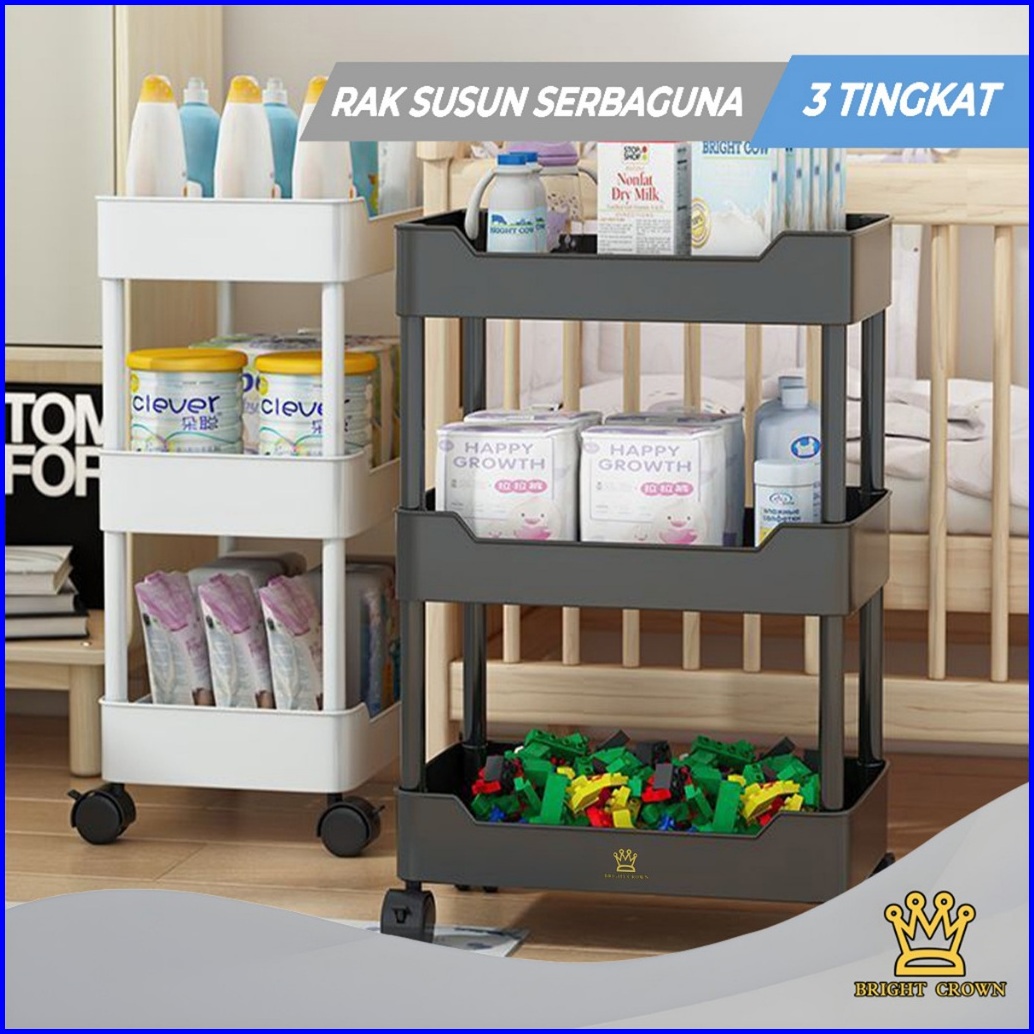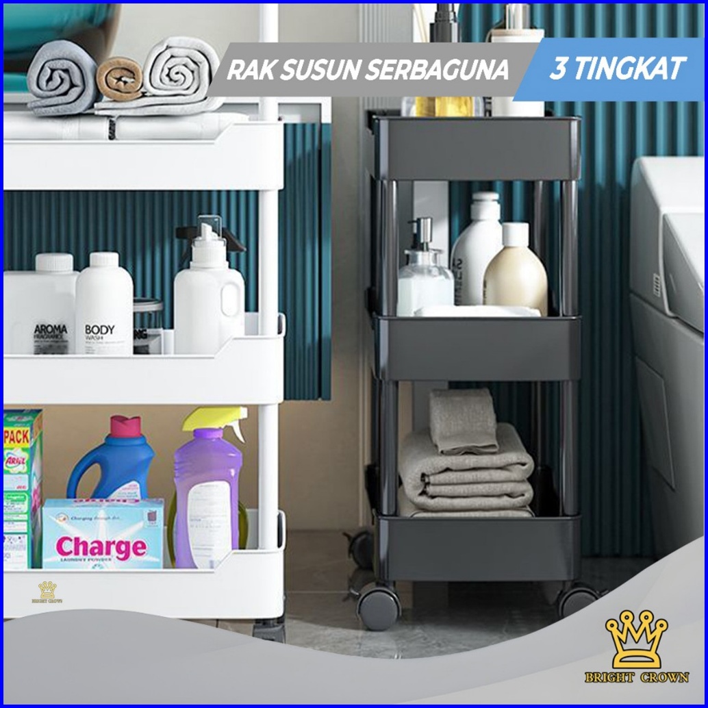 Bright Crown Rak Troli Roda Serbaguna 3 Susun Minimalis Rak Kamar Mandi Dapur Persegi Panjang