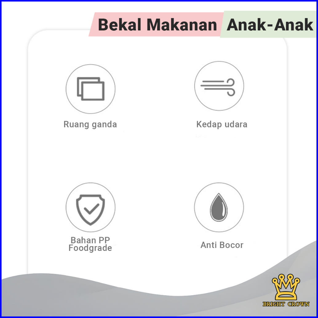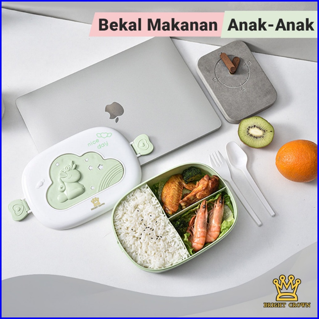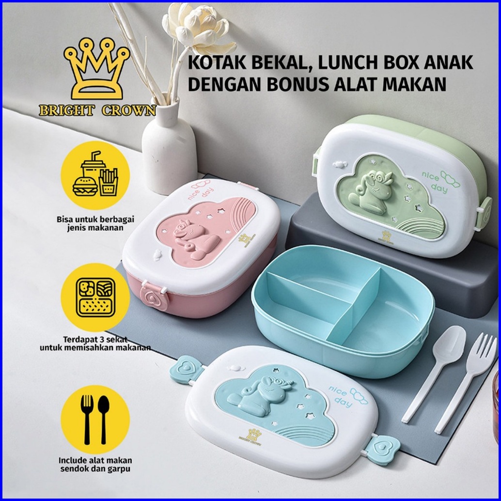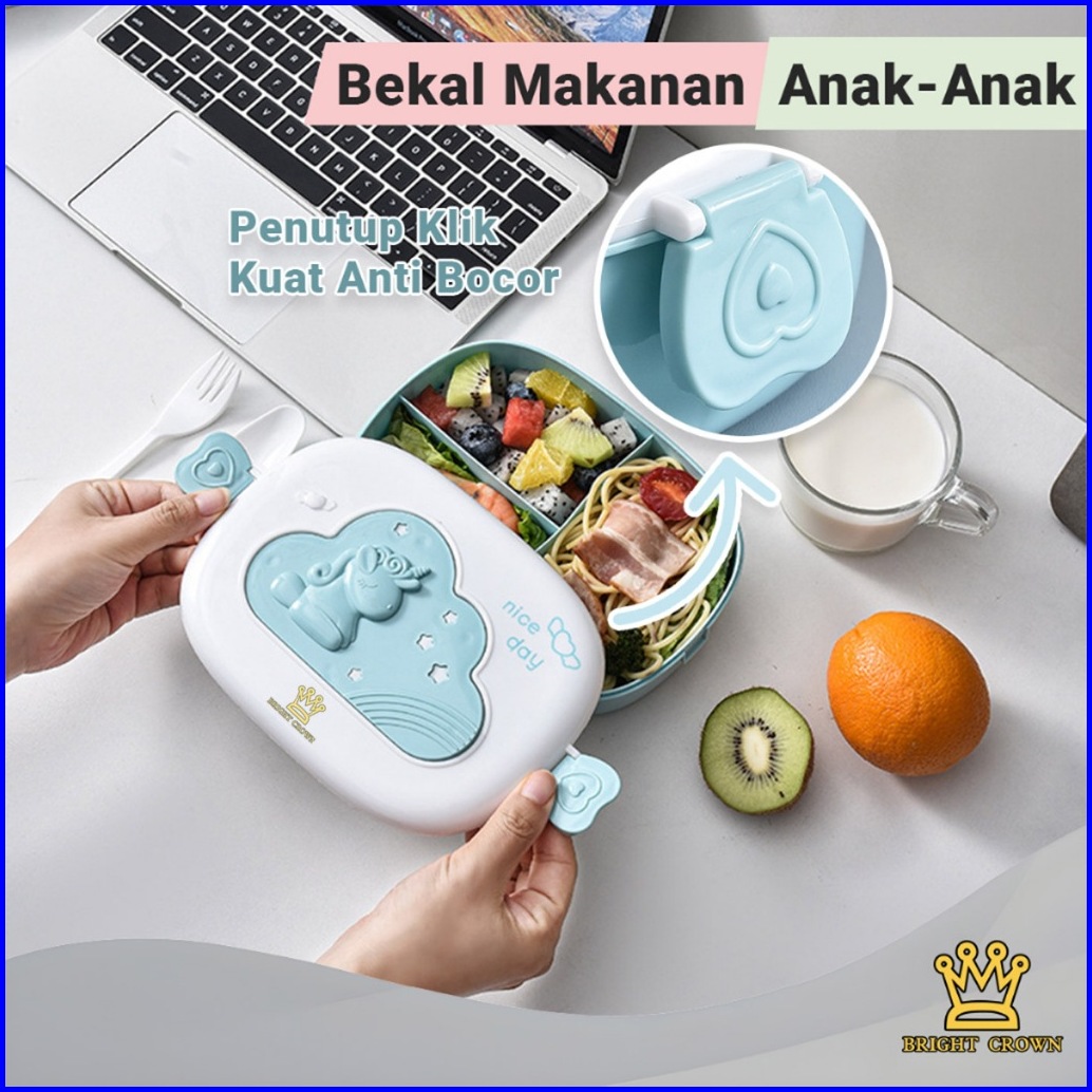 Brightcrown Set Tempat Bekal Makan Anak Bentuk Oval Karakter Unicorn Lucu 3 Sekat Sendok Garpu 800ml