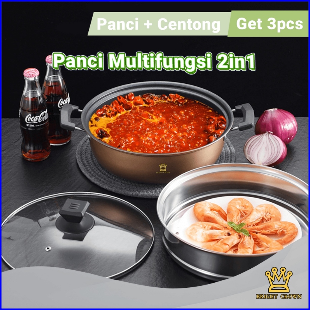 Yatt By Bright Crown Combo Murah Panci Kukus Steamer 2in1 Tutup Kaca 2 Pcs Centong Sayur Gagang