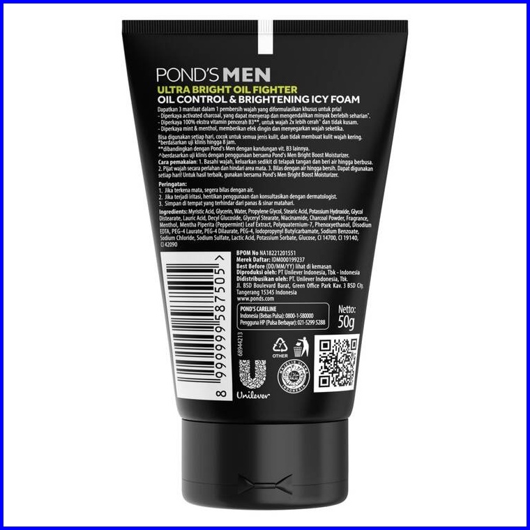 Ponds Men Ultra Bright Oil Fighter Facial Foam 50g