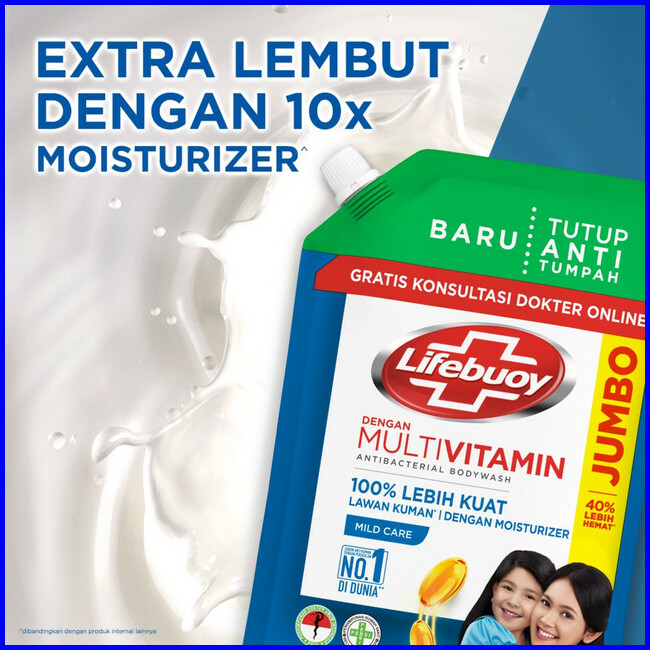 Lifebuoy Sabun Cair Refill Antibakteri Mild Care Activ Silver Formula Milk Cream 800ml Paket Isi 2