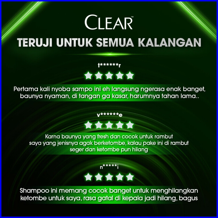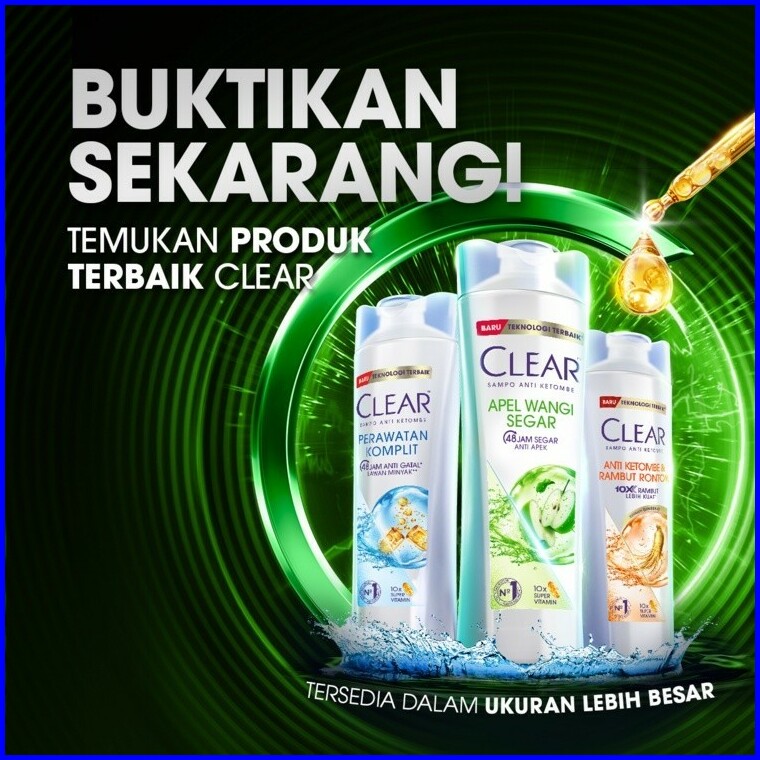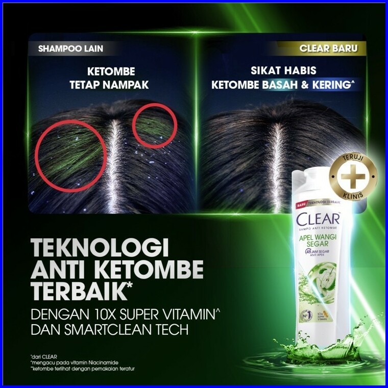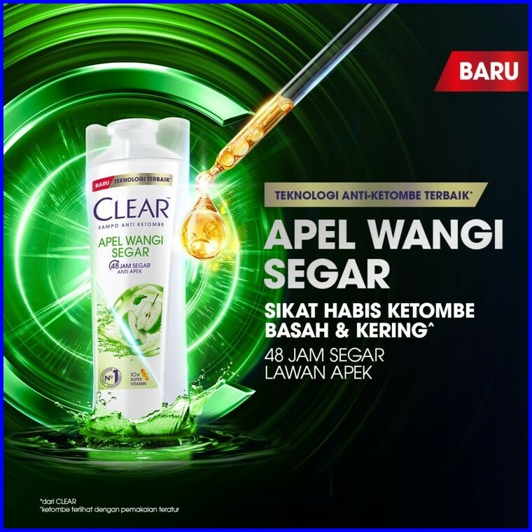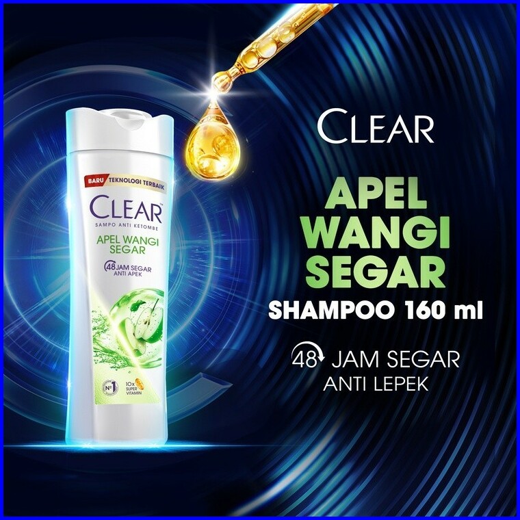 Clear Shampoo Anti Ketombe Apel Wangi Segar Kesegaran Tahan Lama 48 Jam Dan Lawan Apek Dengan 10x Super Vitamin - 160ml