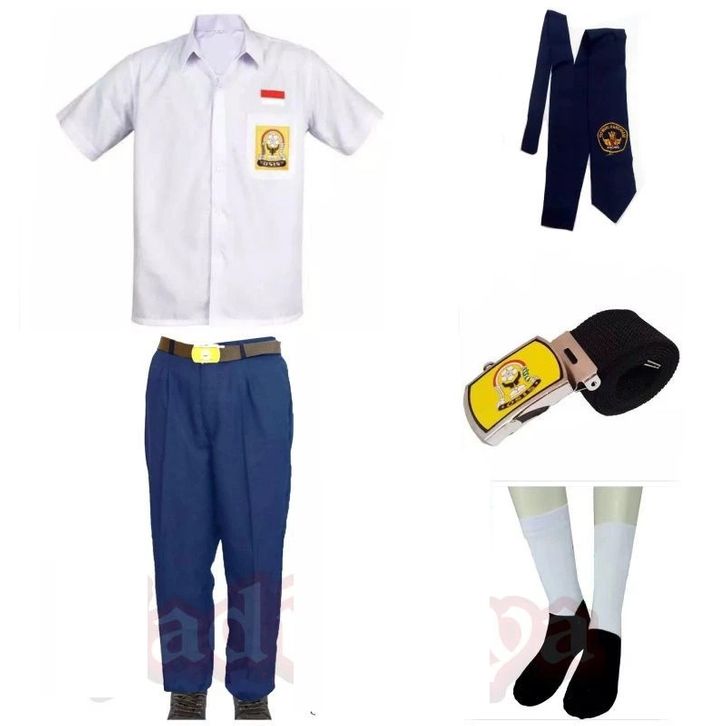Paket Lengkap Terlaris Set Seragam Biru Putih SMP Baju Pendek Celana Panjang