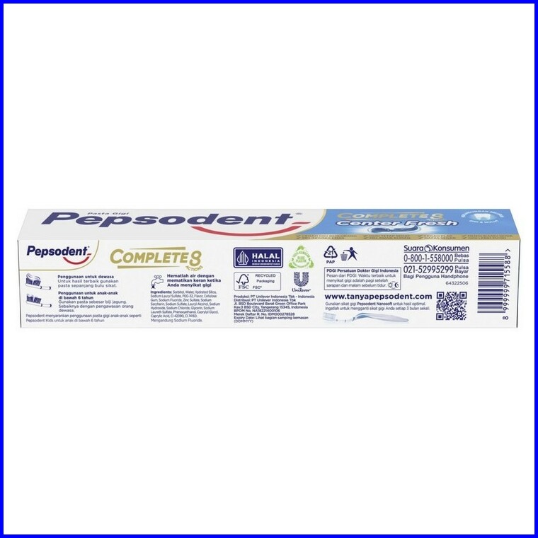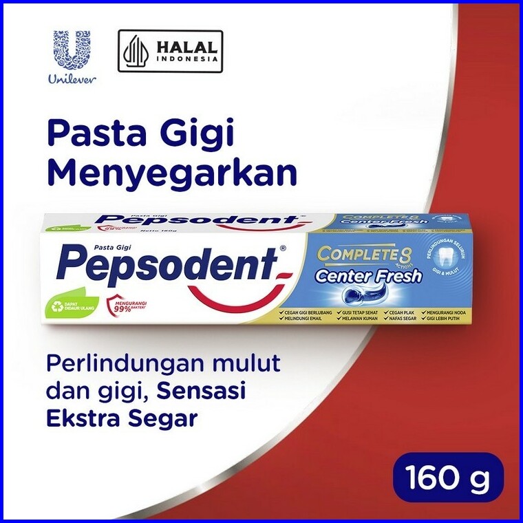 Pepsodent Pasta Gigi Complete 8 Center Fresh Toothpaste 160g